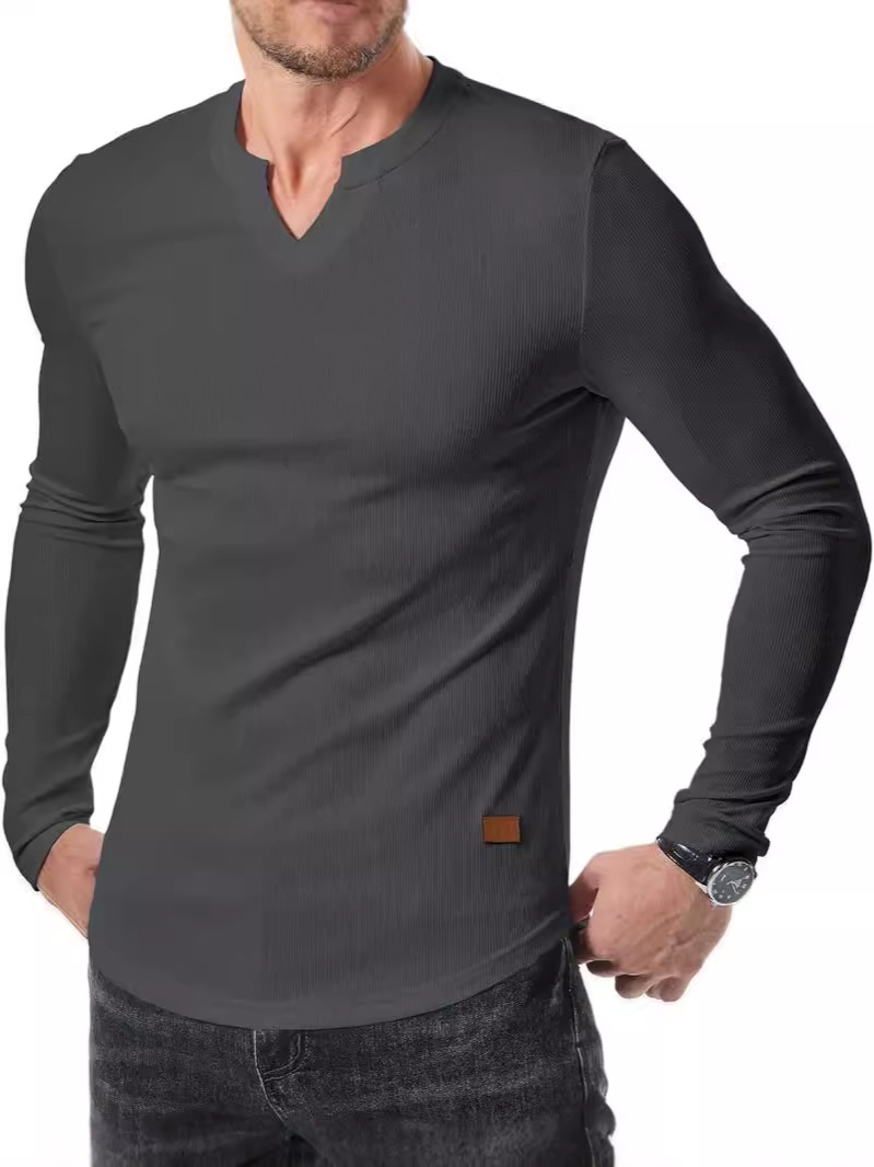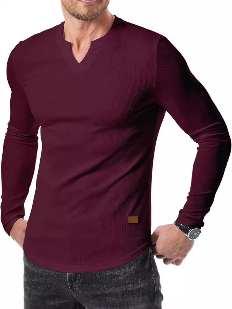 Главная страница > Трансграничная амазонка новая внешняя торговля осень-зима мужская V-образная воронка футболка сплошной цвет повседневная мода мужской длинный рукав