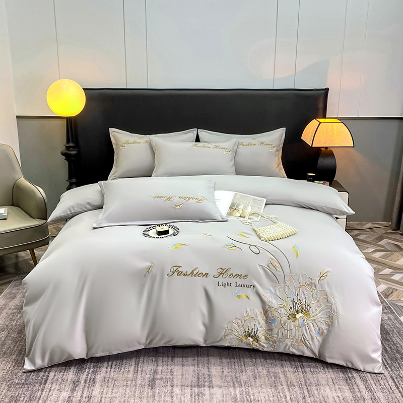 Главная страница > Кросс-бордерный современный простой светлый люкс мягкий хлопковый комплект постельного белья с вышивкой, три предмета, четыре предмета, для всех сезонов