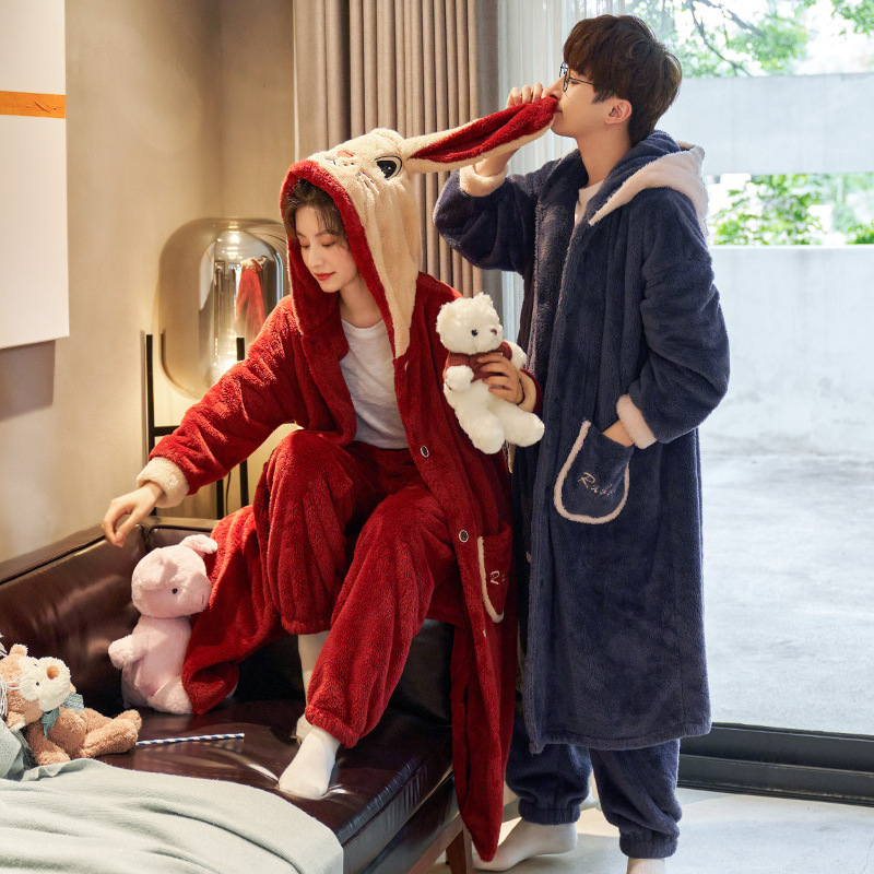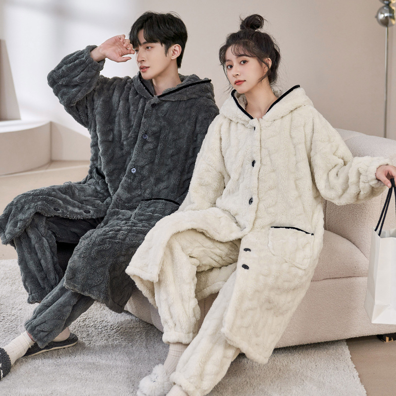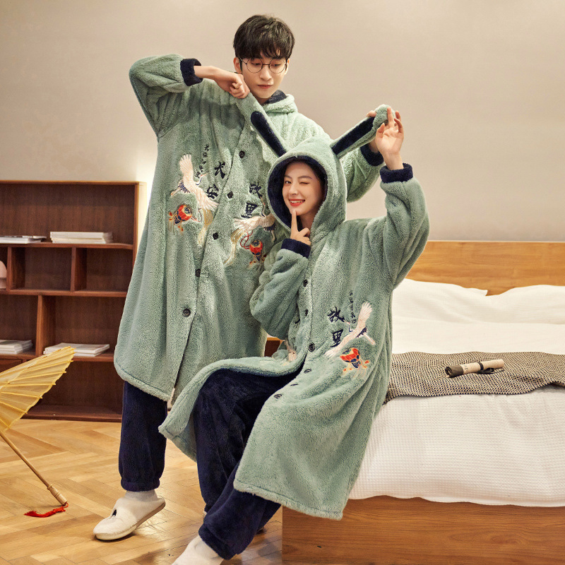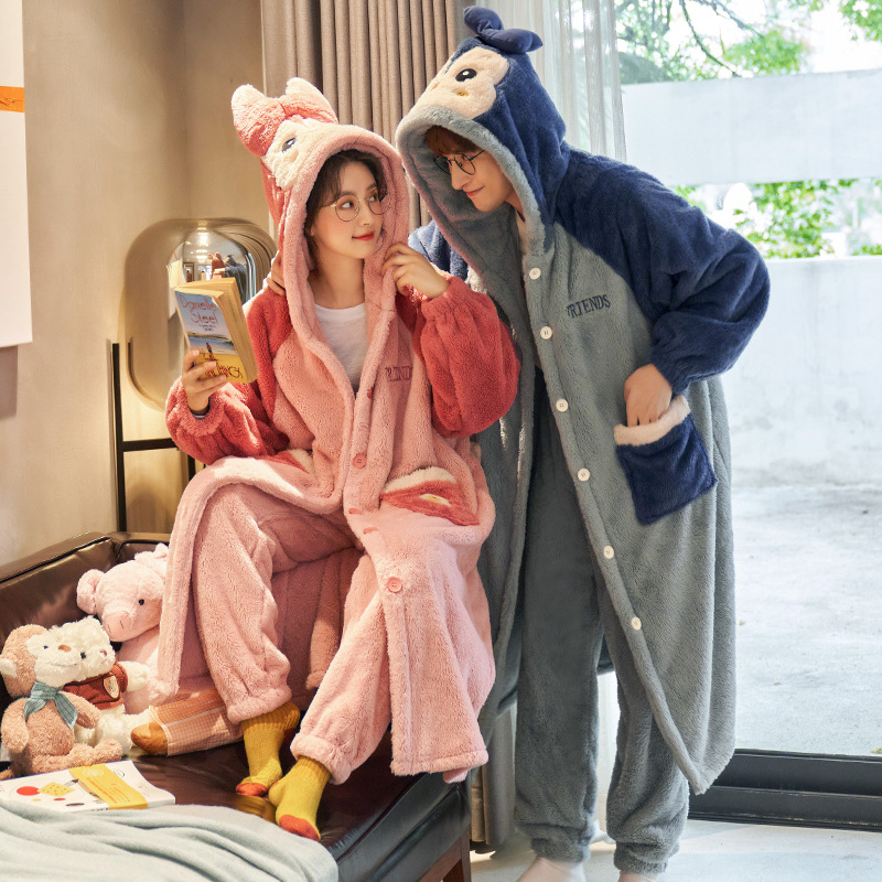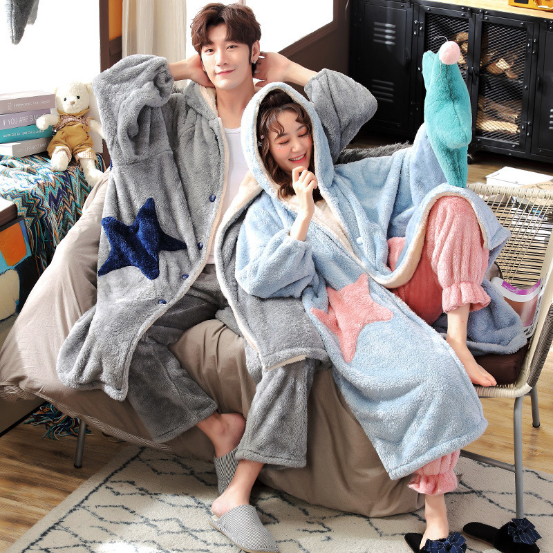 Главная страница > Пара пижам осень и зима коралловый флис для мужчин и женщин утолщенная длинная ночная рубашка на флисовой подкладке фланелевый теплый костюм