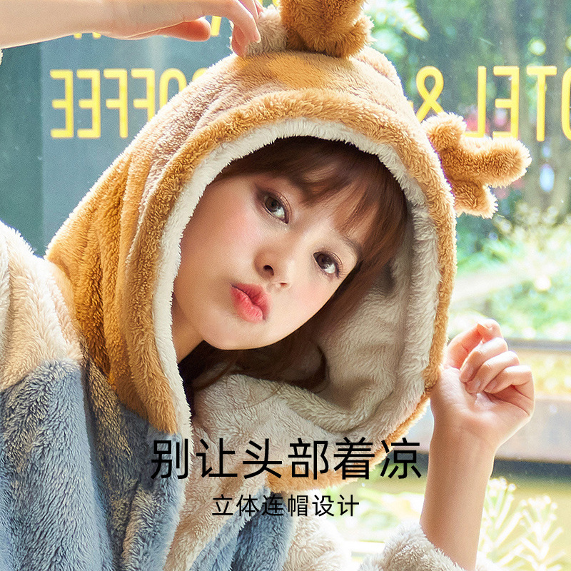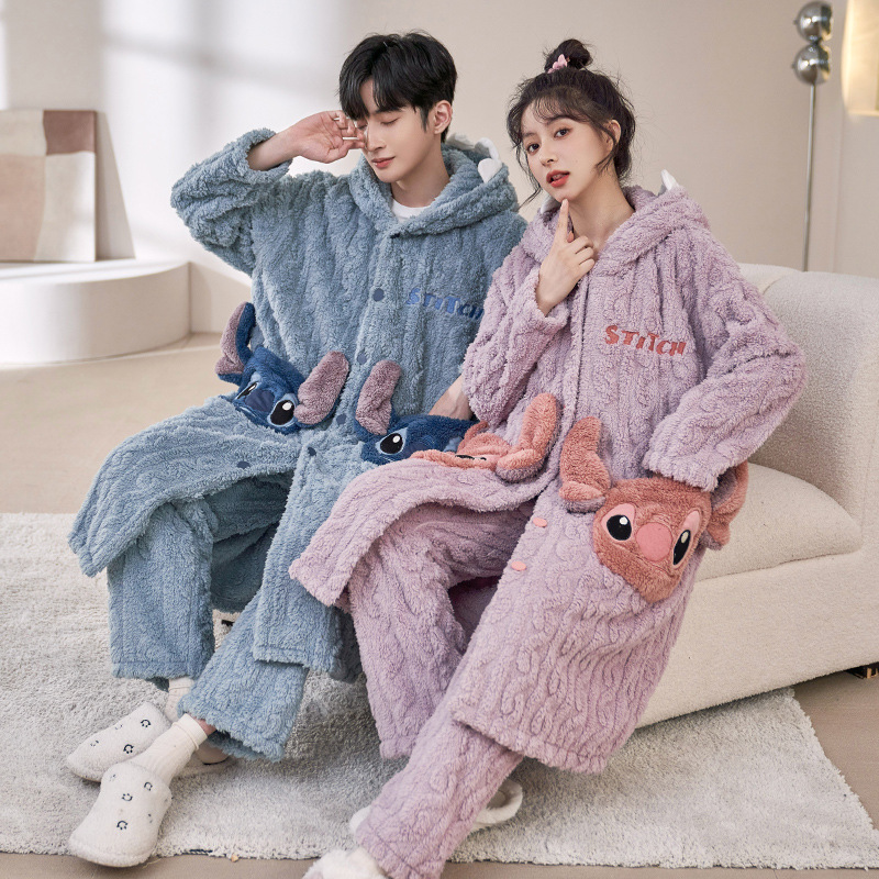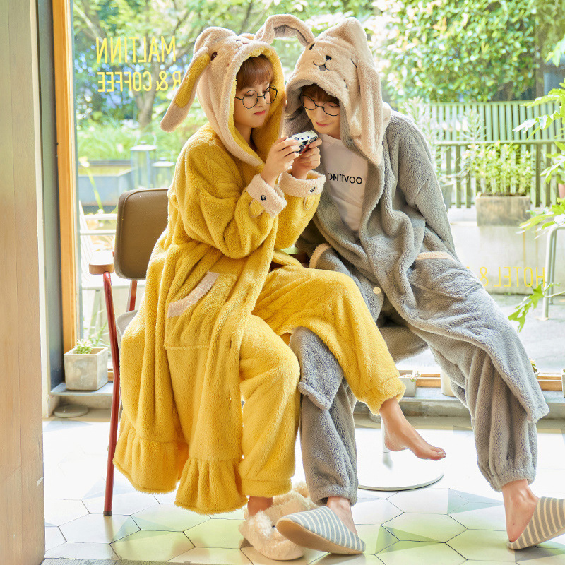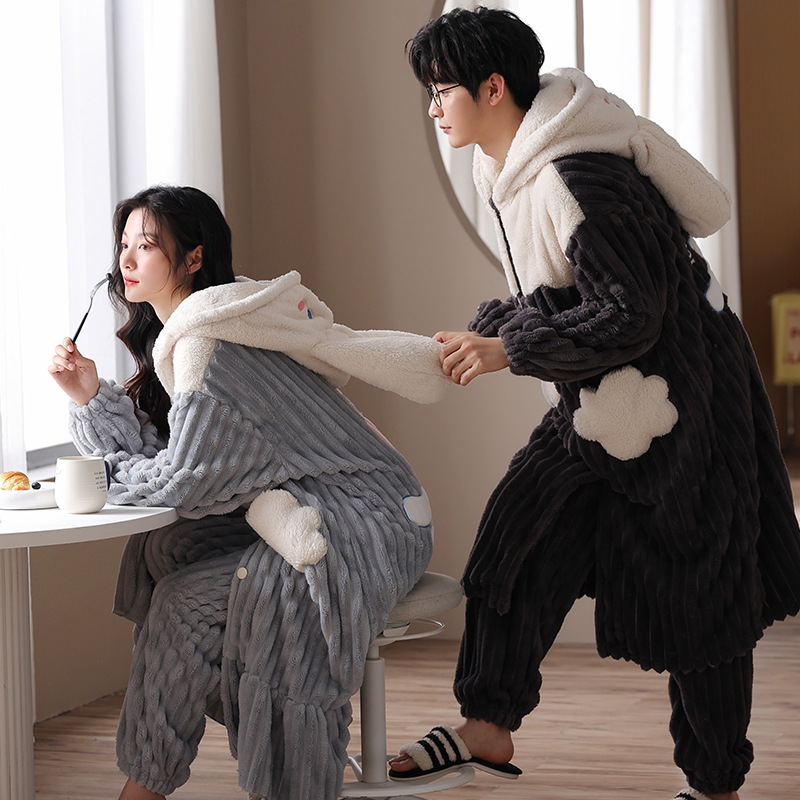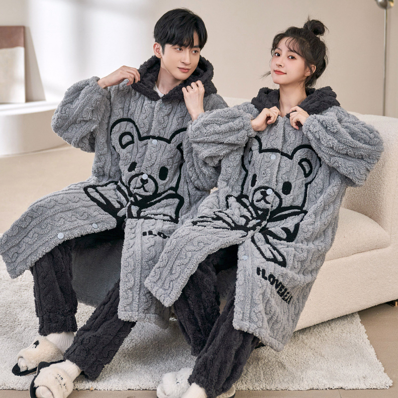Главная страница > Пара пижам осень и зима коралловый флис для мужчин и женщин утолщенная длинная ночная рубашка на флисовой подкладке фланелевый теплый костюм