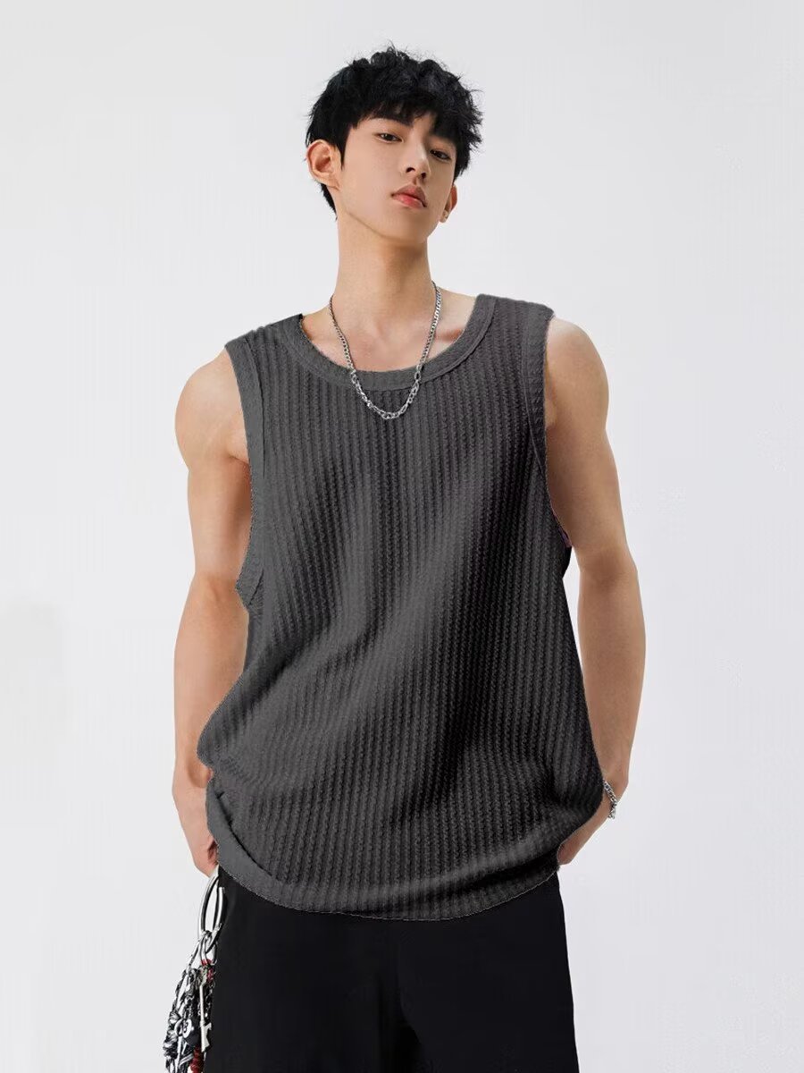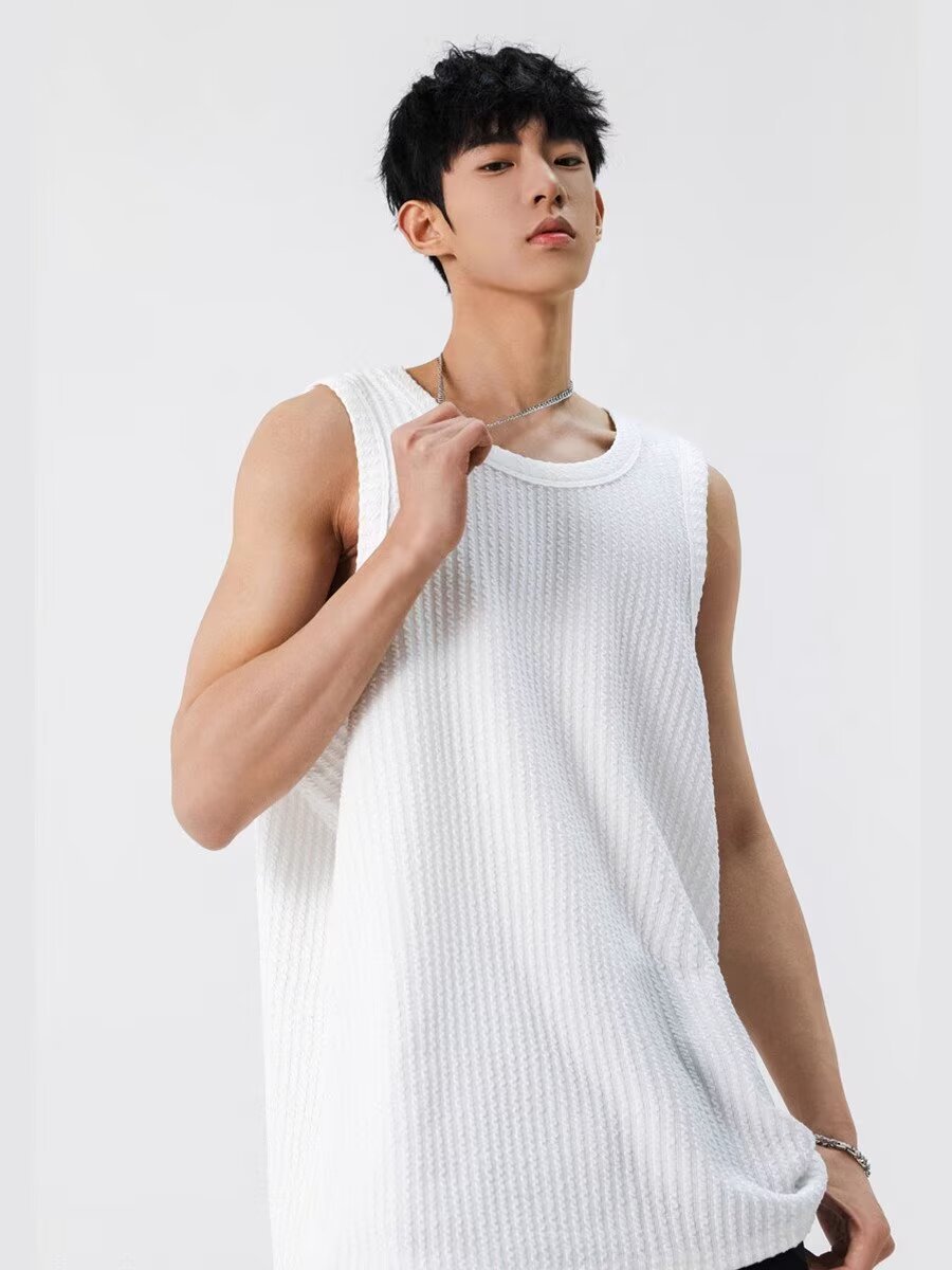 Чувство текстуры Американский жилетка плеча для мальчиков летом сплошной цвет новый без тренда бренда