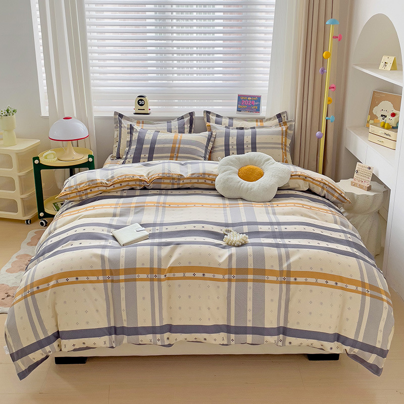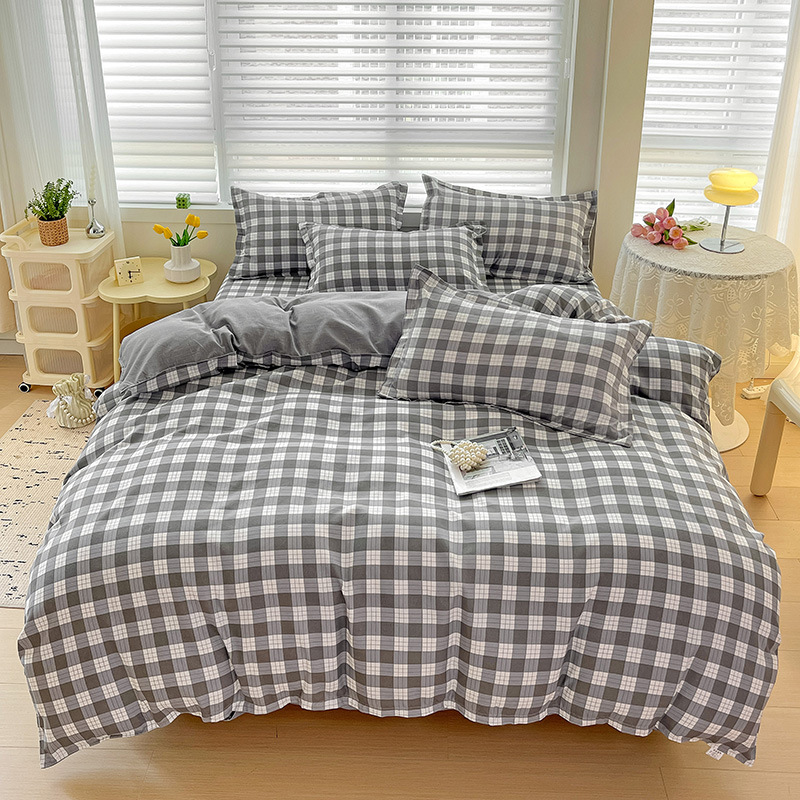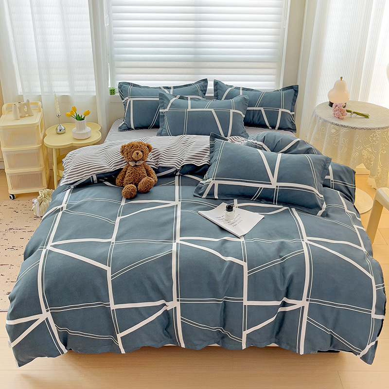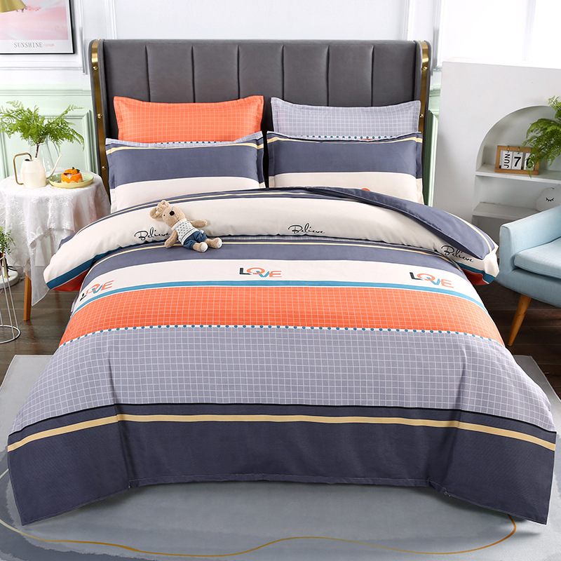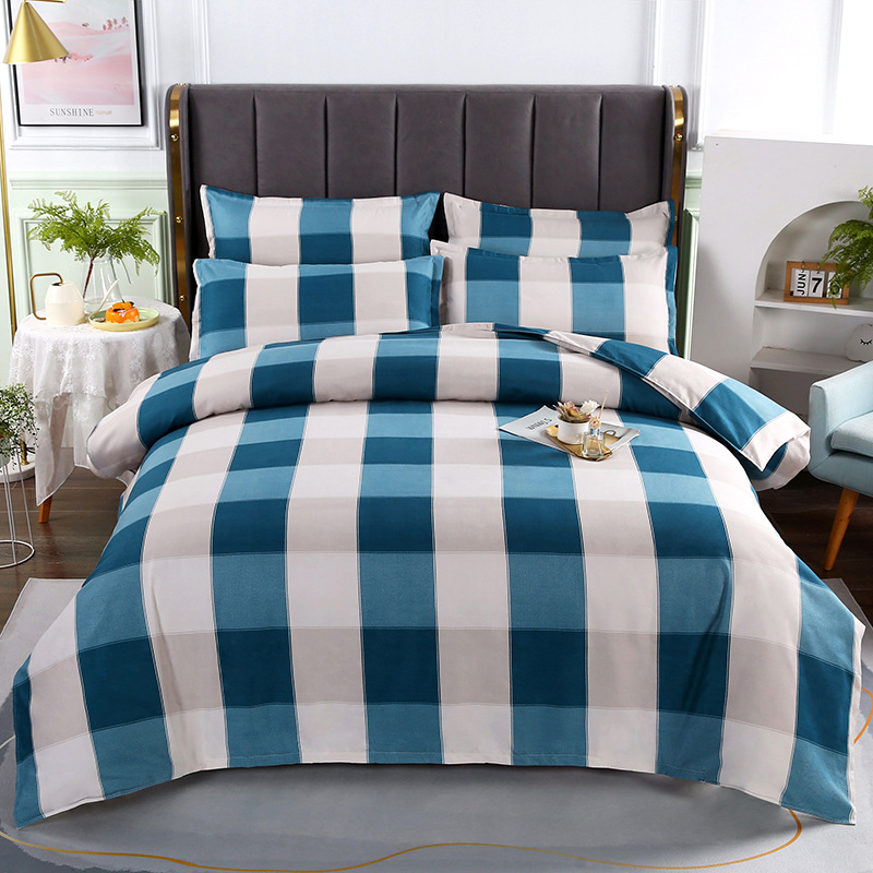 - Комплект из четырех предметов, простыня 1,5 м: пододеяльник 150*200 см, простыня 200*230 см, наволочка 48*74 см, 2 шт.