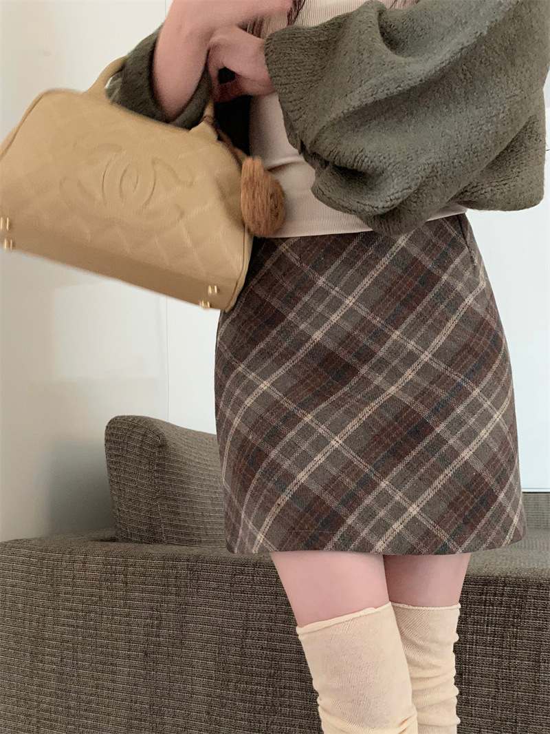 Главная страница > Шерстяная юбка в клетку юбка женского осеннего и зимнего ретро юбка в клетку