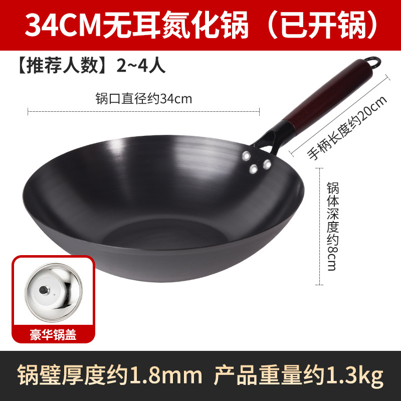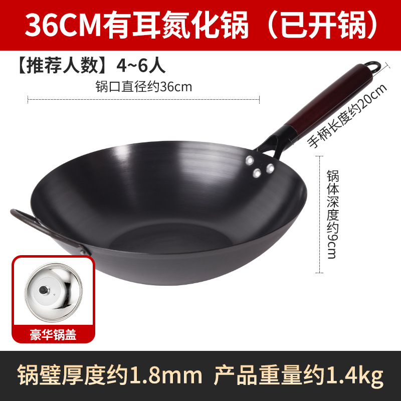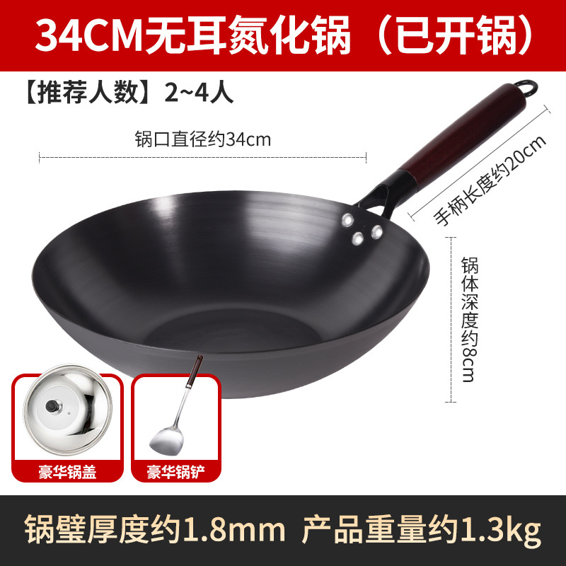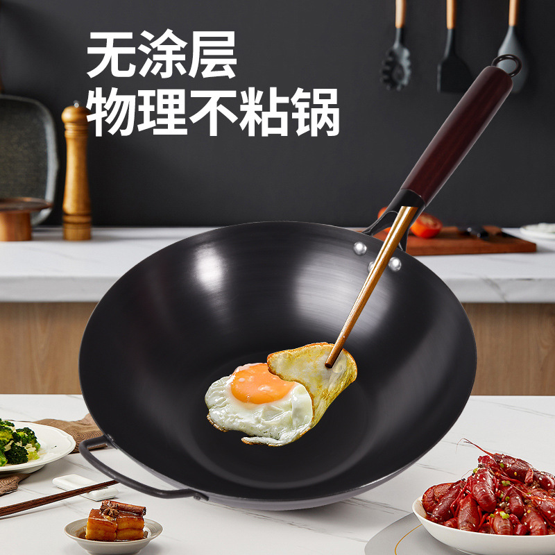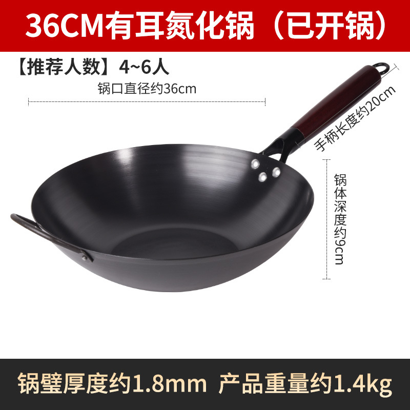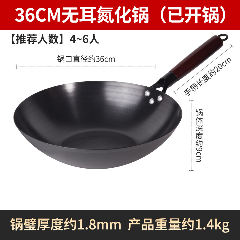 Бесплатная доставка, нитрированный, нержавеющий, железный вок с плоским дном, вок с антипригарным покрытием, открытый вок, вок без покрытия, вок для индукционной плиты