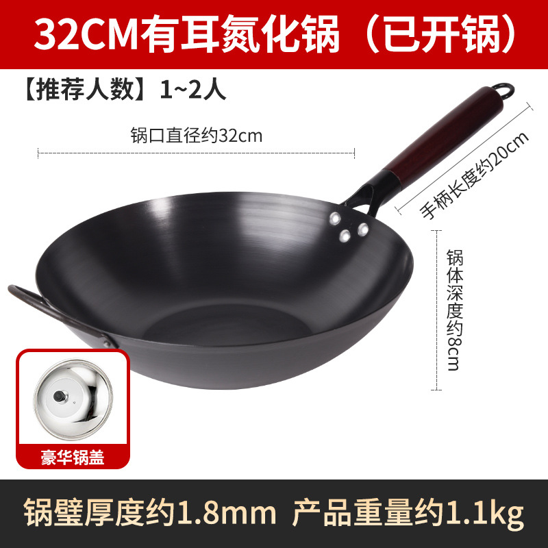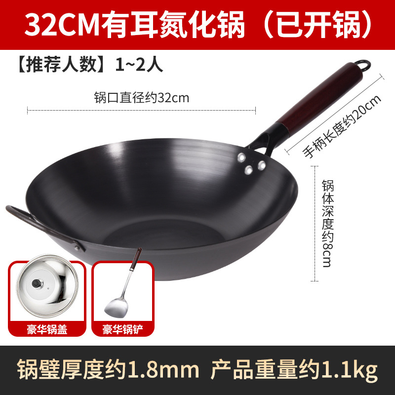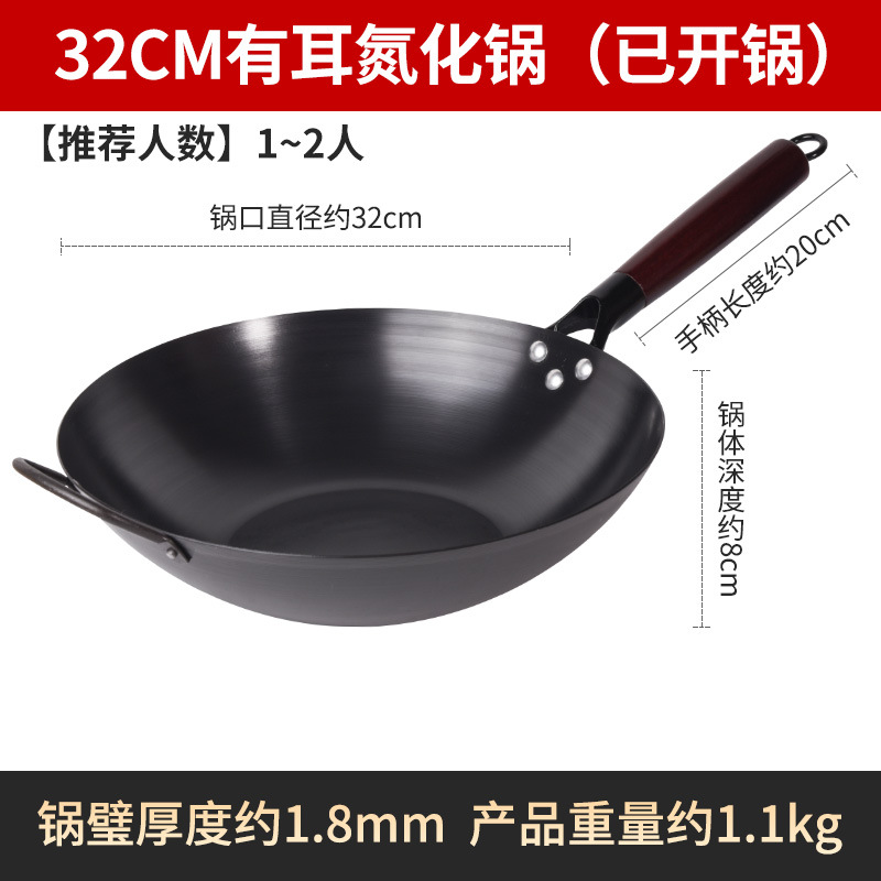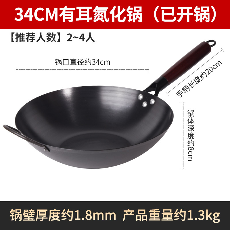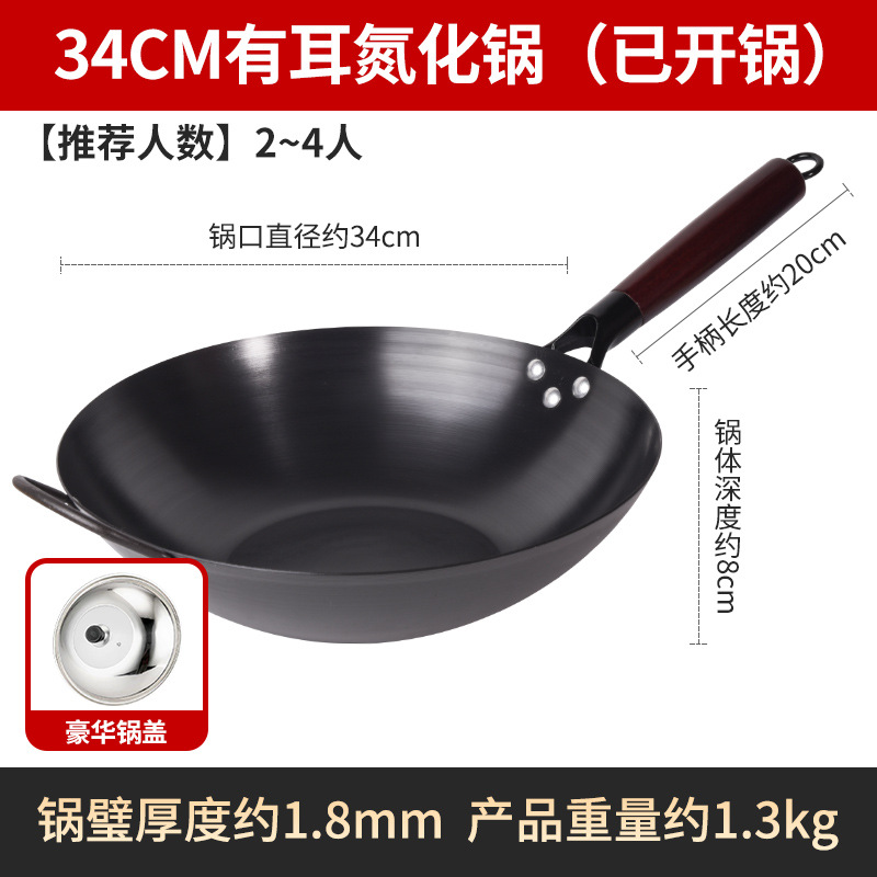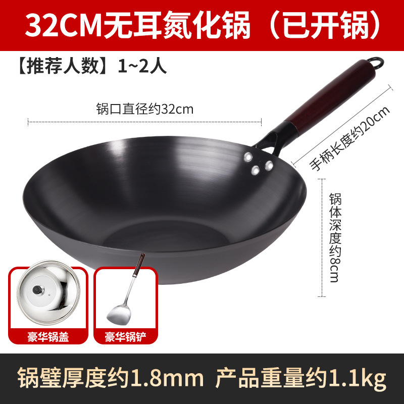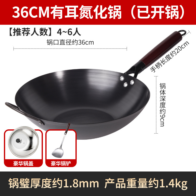 Бесплатная доставка, нитрированный, нержавеющий, железный вок с плоским дном, вок с антипригарным покрытием, открытый вок, вок без покрытия, вок для индукционной плиты