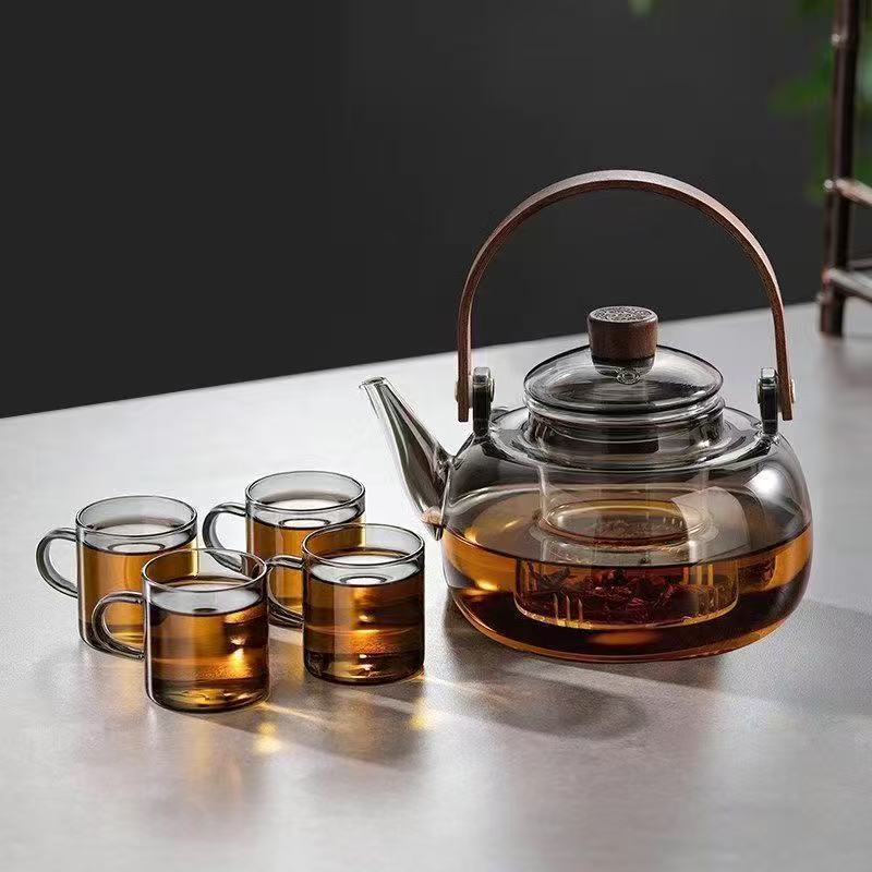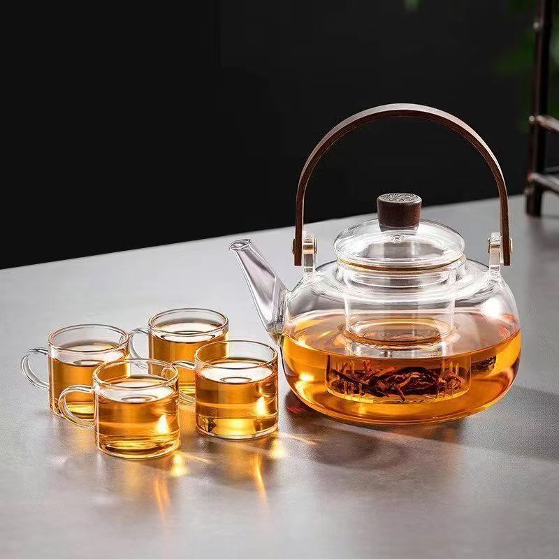 Прозрачный новый 1000 мл [шешеничный чайник] + 4 чашки