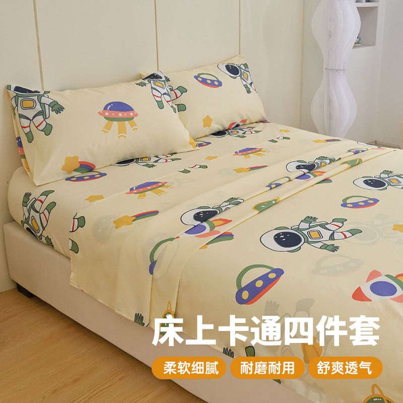 Главная страница > Детский комплект постельного белья из хлопка с астронавтами для мальчиков, пододеяльник с мультяшным рисунком, простыня на резинке, комплект из четырех предметов, ткань с эффектом звездного неба.