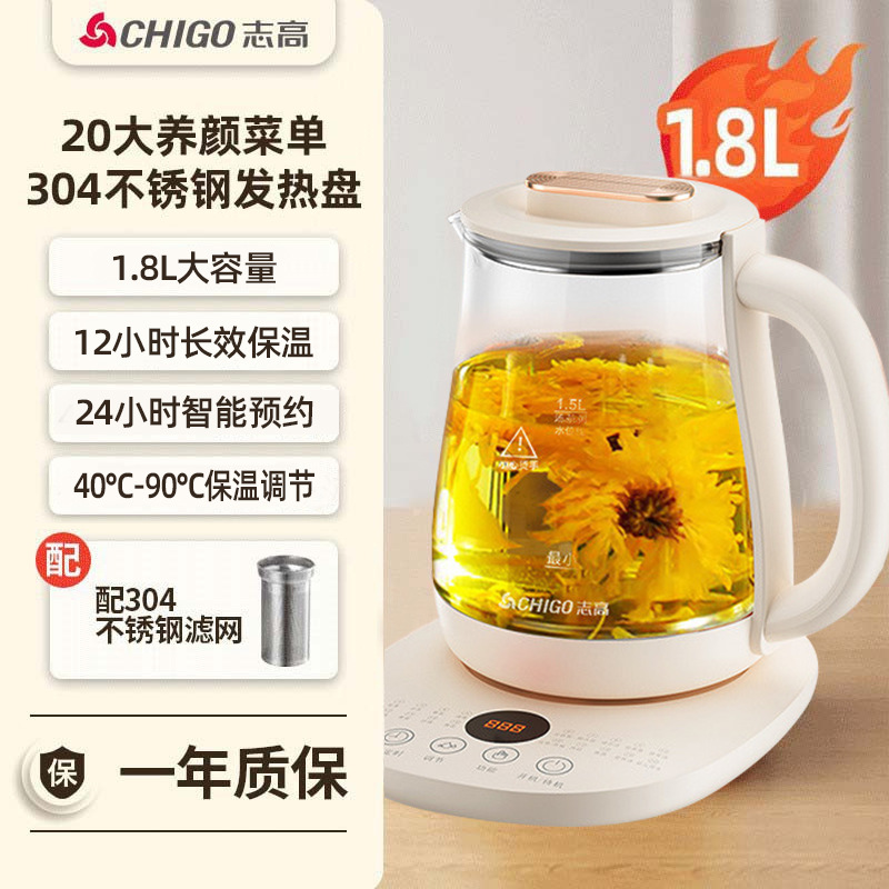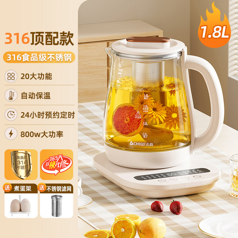 Главная страница > Zhigao Health Pot Автоматический утолщенный стеклянный многофункциональный чайник Электрический чайник Цветочный чайный горшок Отварной горшок