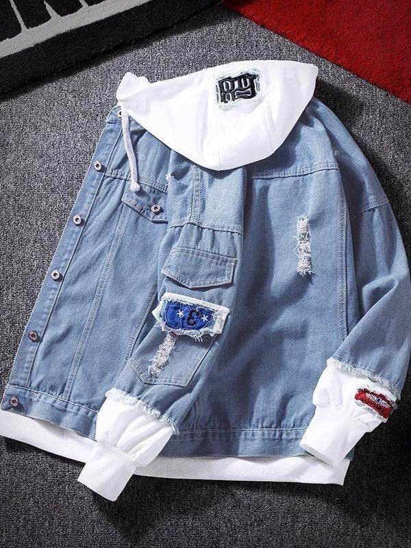 Главная страница > Новая джинсовая куртка с прострочкой на весну и осень, мужской модный брендовый Повседневный бейсбольный костюм в Корейском стиле, универсальная куртка для пар