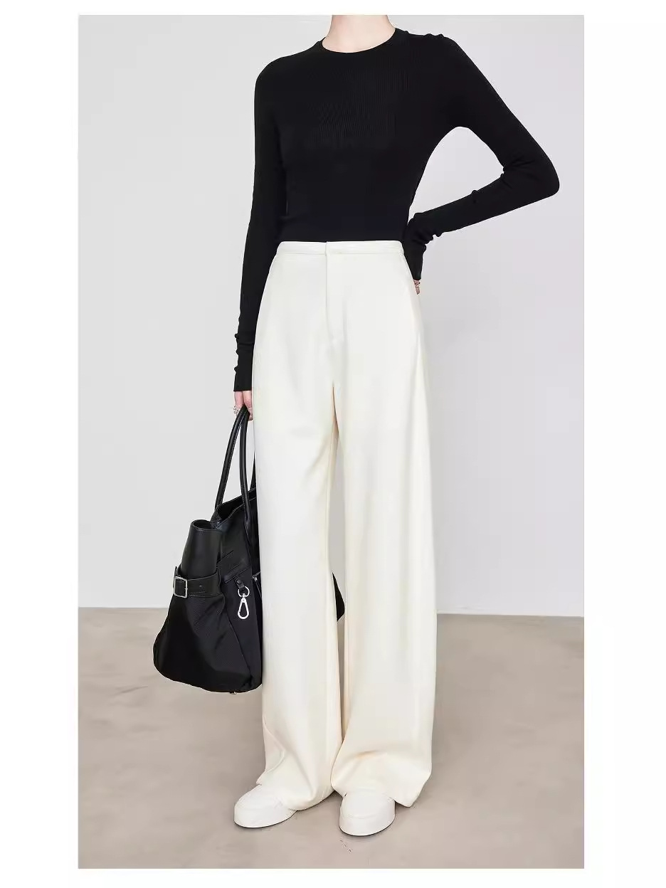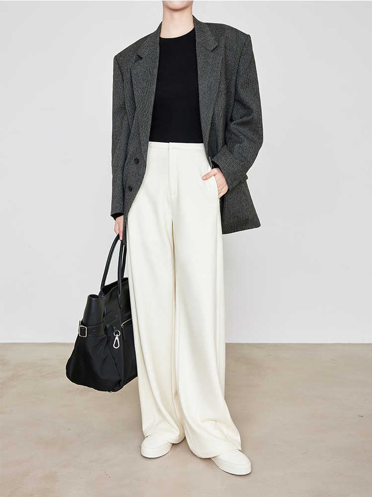 Главная страница > 2025 новых белых банановых брюк для женщин, свободные прямые повседневные брюки, тёплые широкие брюки на осень и зиму.