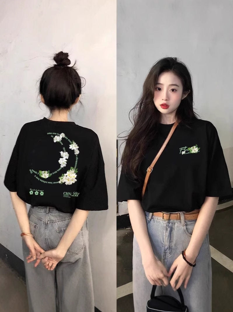 Главная страница > Черная футболка с открытыми плечами для похудения, женская футболка с короткими рукавами, новинка 2024 года, летняя свободная хлопковая дизайнерская нишевая футболка, топ