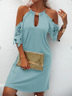 Главная страница > AliExpress трансграничное 2022 летнее Европейское и американское женское полое металлическое платье с крючком и круглым вырезом, сексуальное платье с открытыми плечами