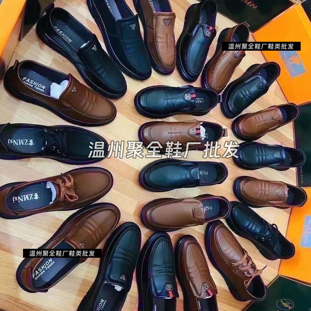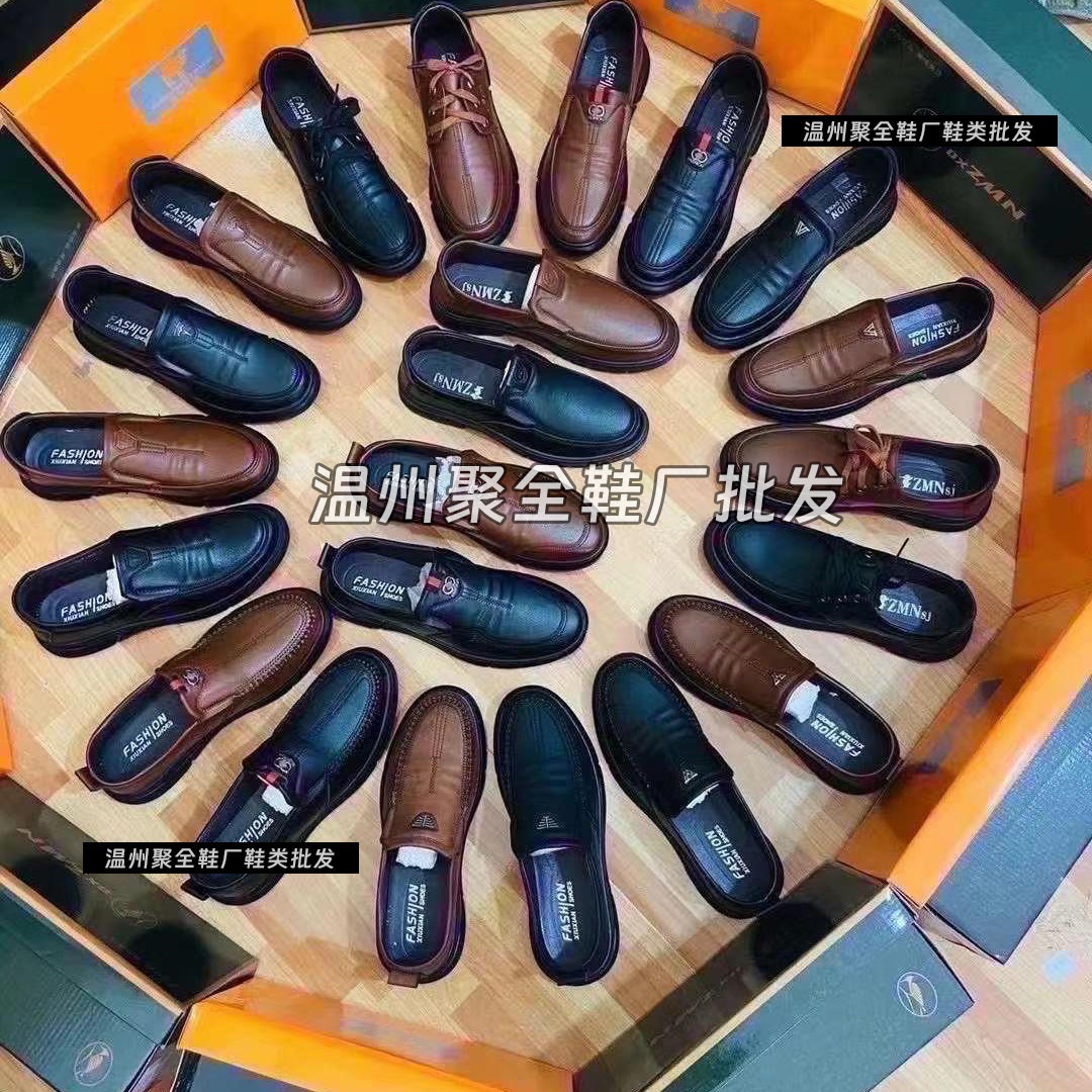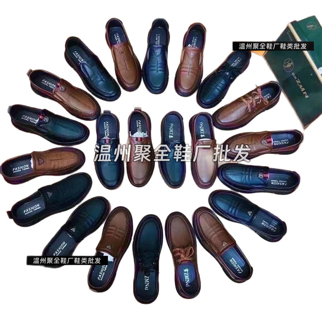 Производители высококачественной кожаной обуви в Вэньчжоу поставляют повседневные мужские кожаные кожаные туфли оптом на уличные ларьки, прямые трансляции различных моделей для внутренних продаж