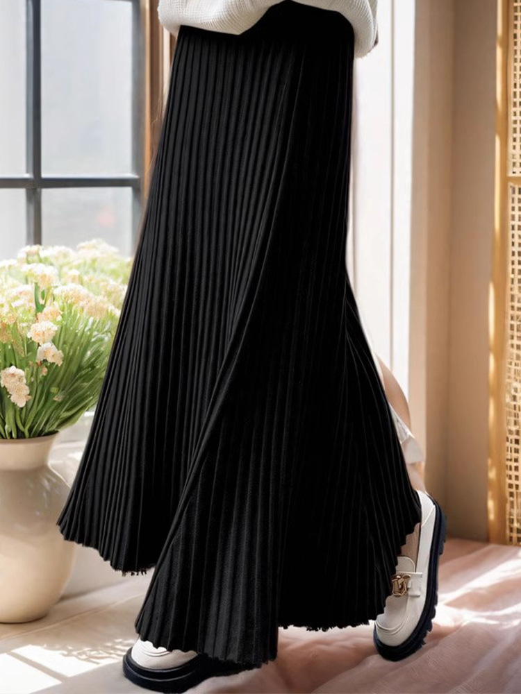 Плиссированная трикотажная юбка-зонтик черного цвета.