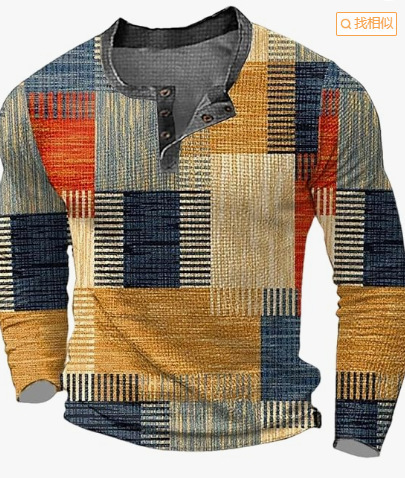 Мужская футболка с длинными рукавами Внешняя торговля Трансграничные поставки Цифровая печать Рубашка-поло с длинными рукавами на пуговицах Мужская футболка с длинными рукавами Мужская одежда