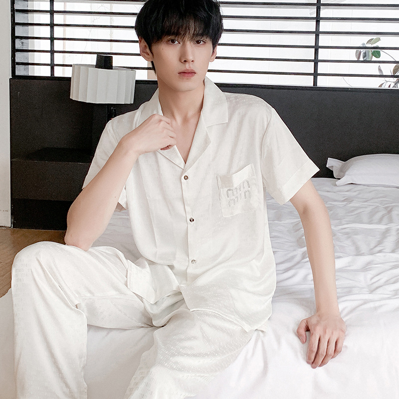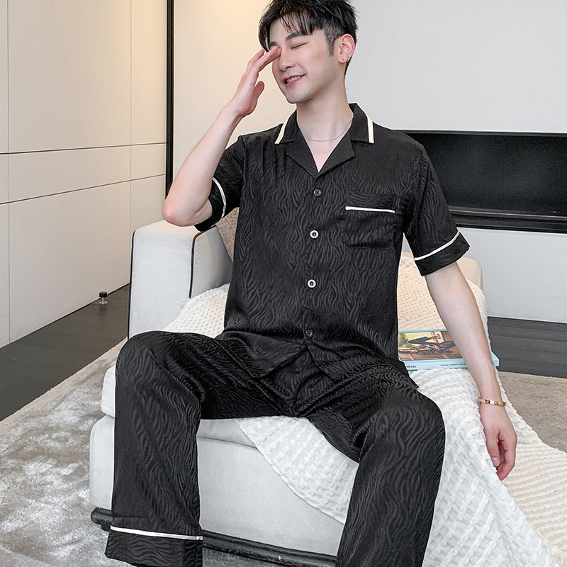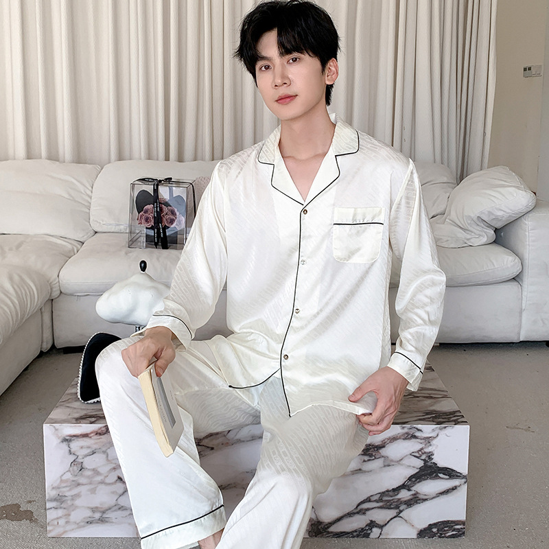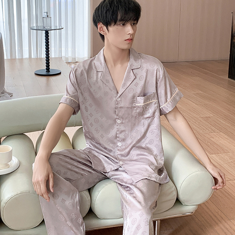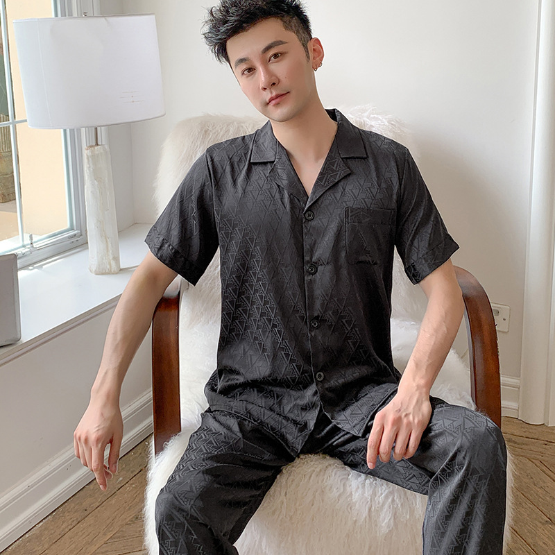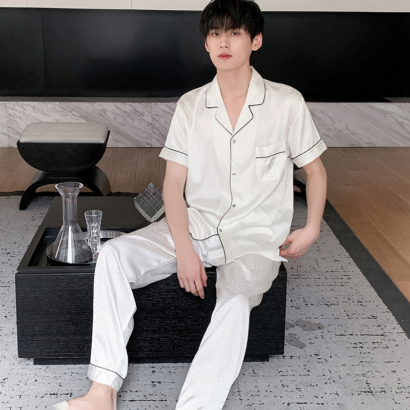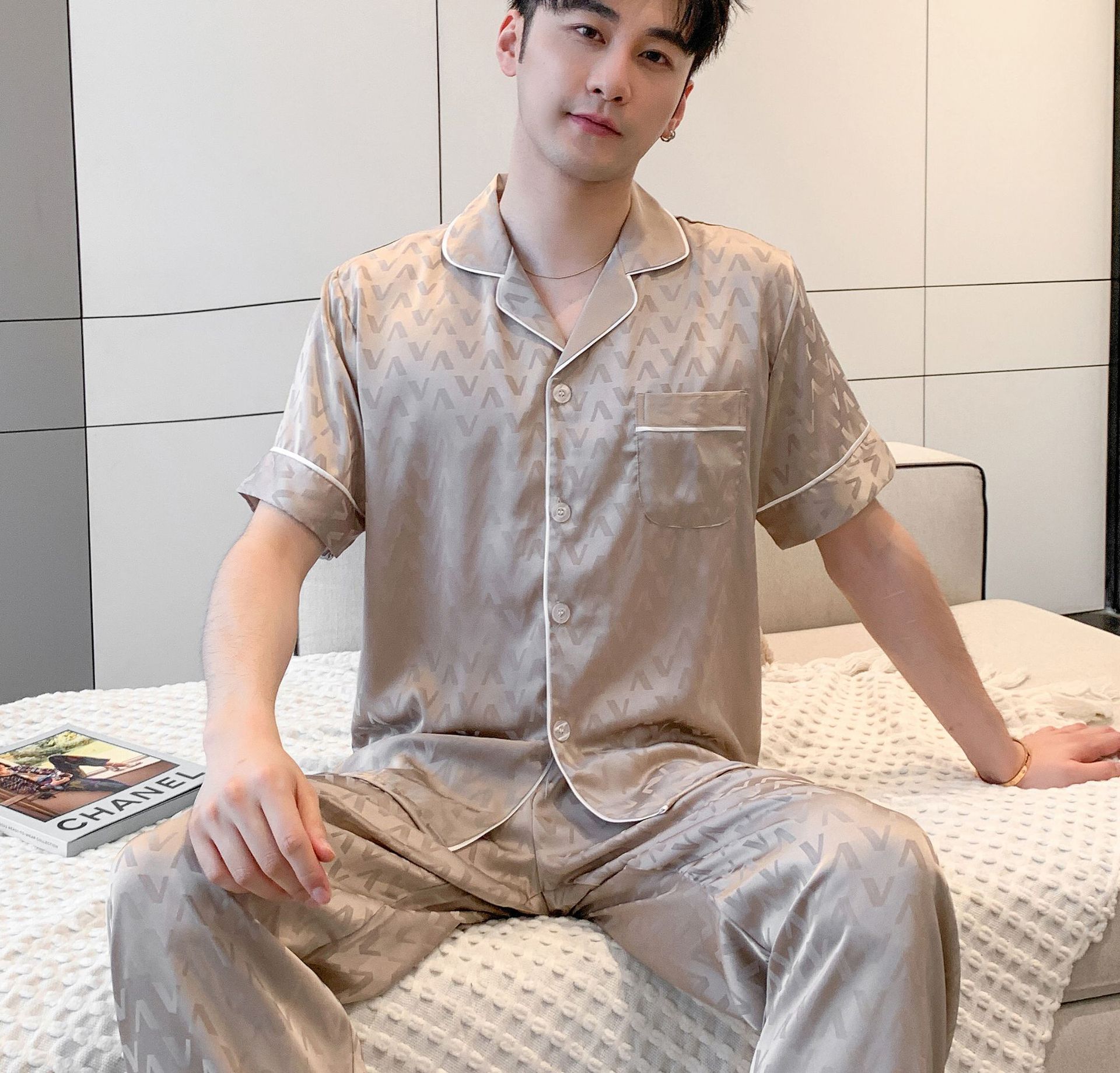 Главная страница > Пижама из ледяного шелка Мужская весна и осень Легкий роскошный набор Летний шелк тонкий продвинутый жаккардовый домашний костюм можно носить на улице