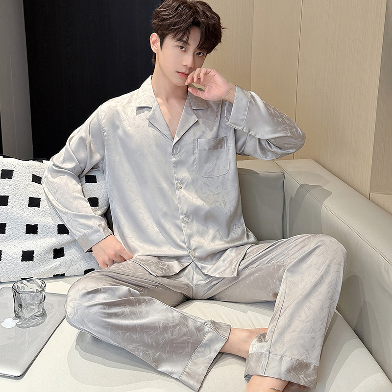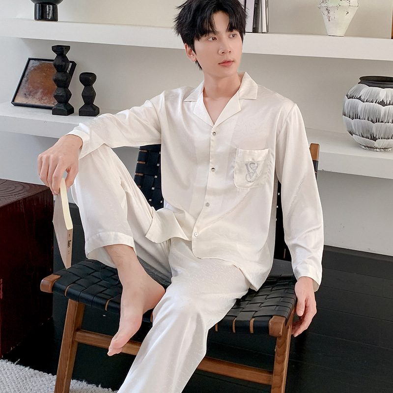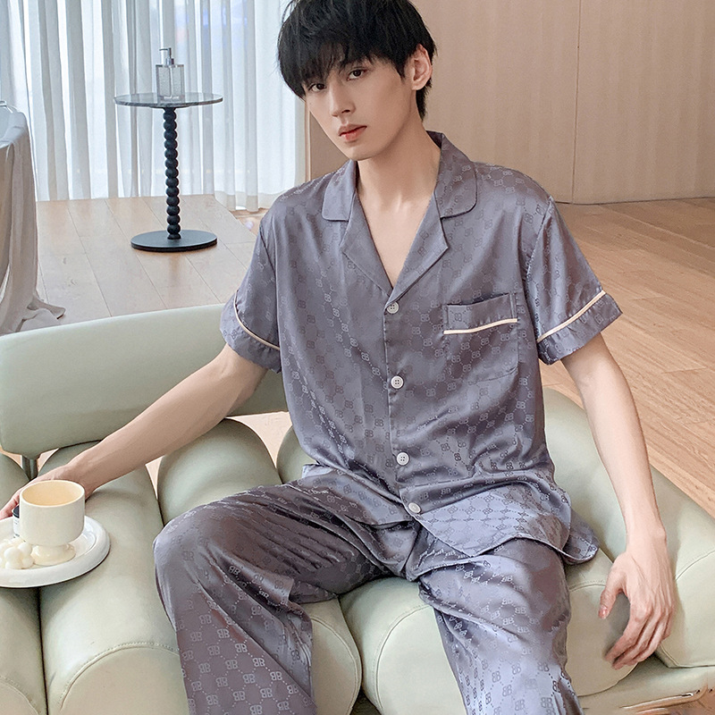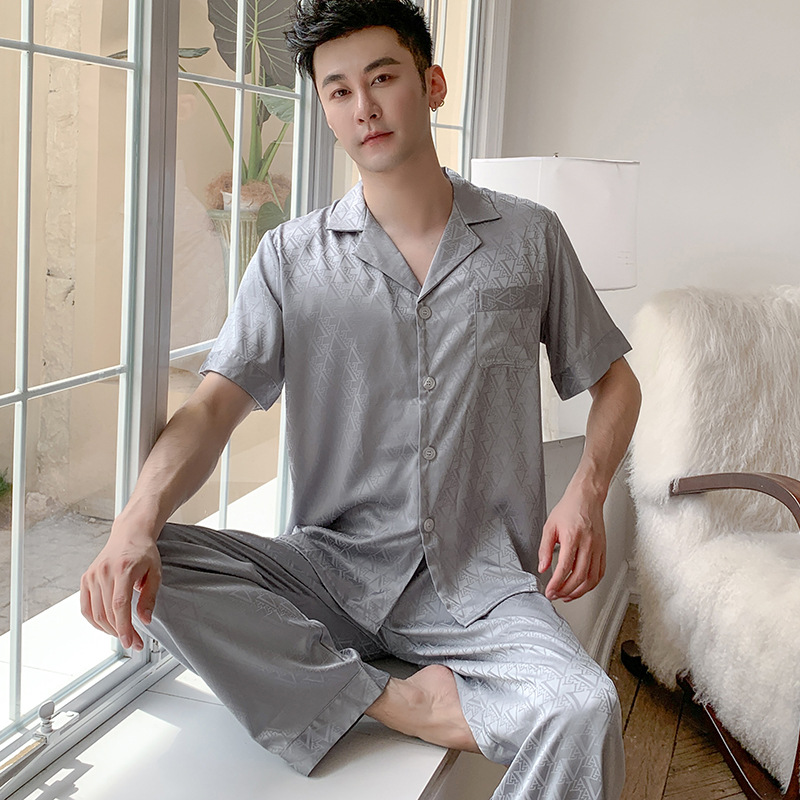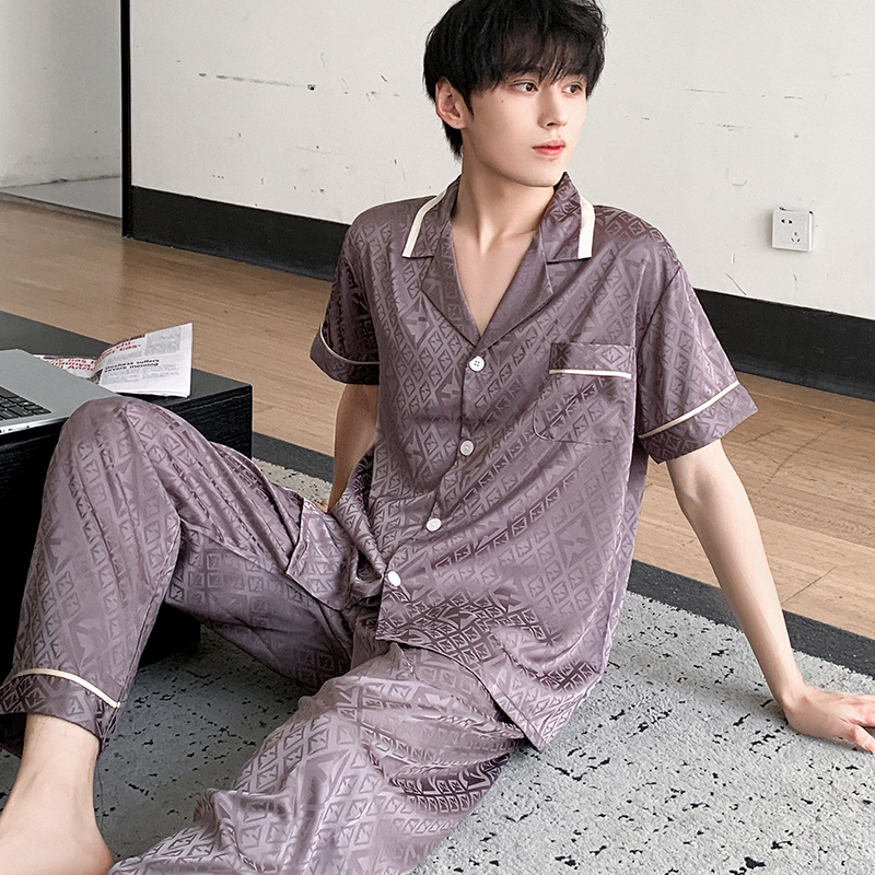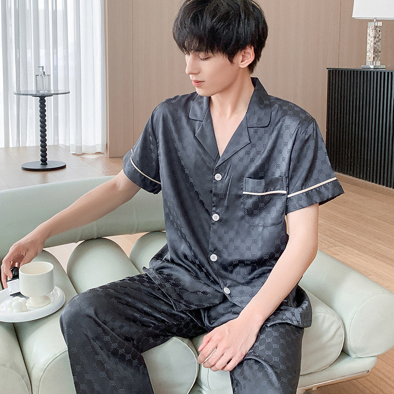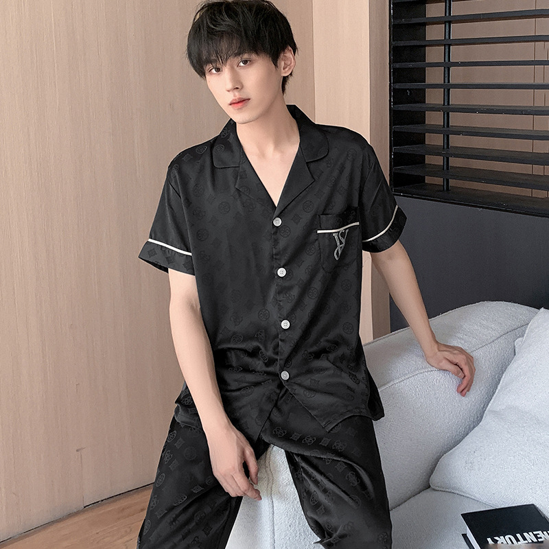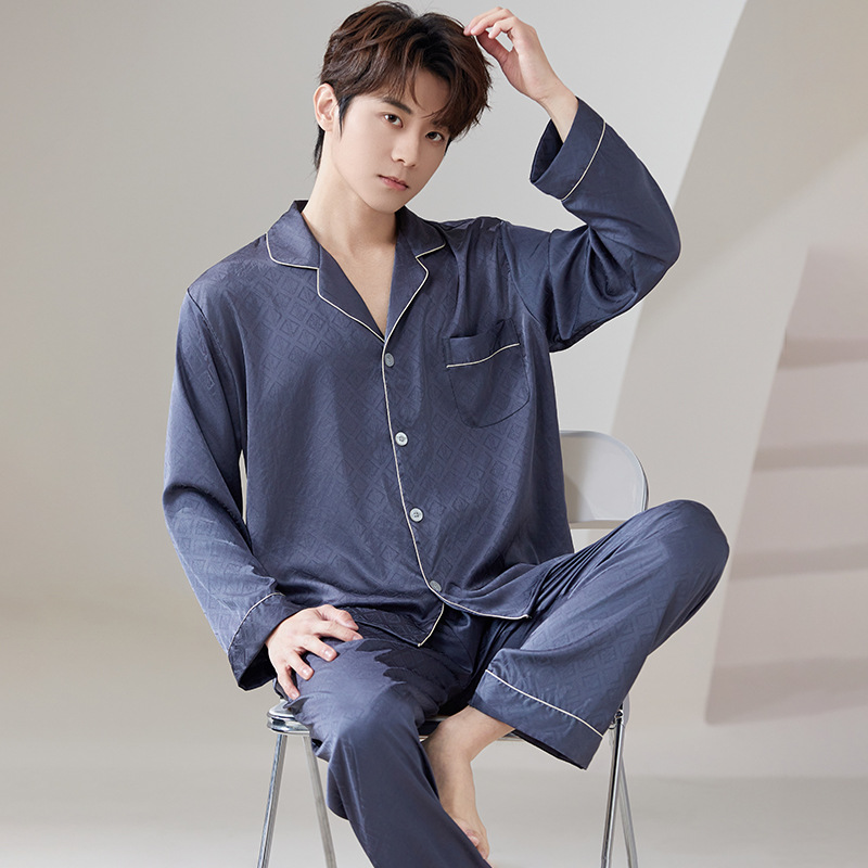 Главная страница > Пижама из ледяного шелка Мужская весна и осень Легкий роскошный набор Летний шелк тонкий продвинутый жаккардовый домашний костюм можно носить на улице