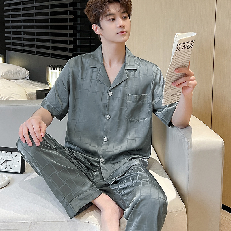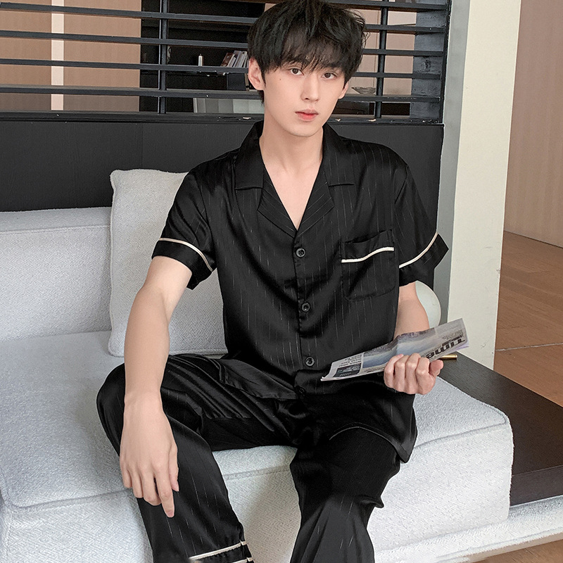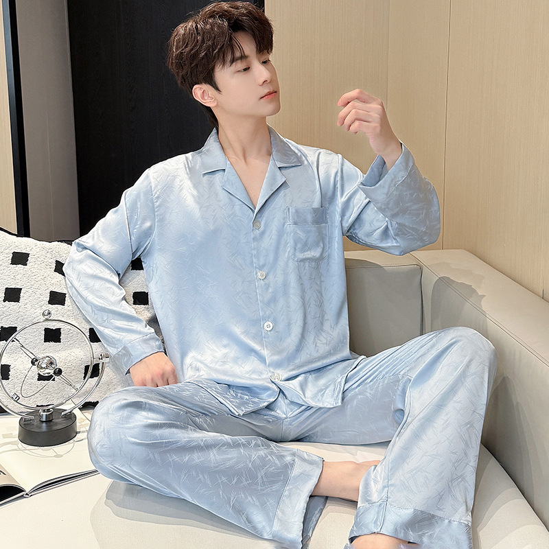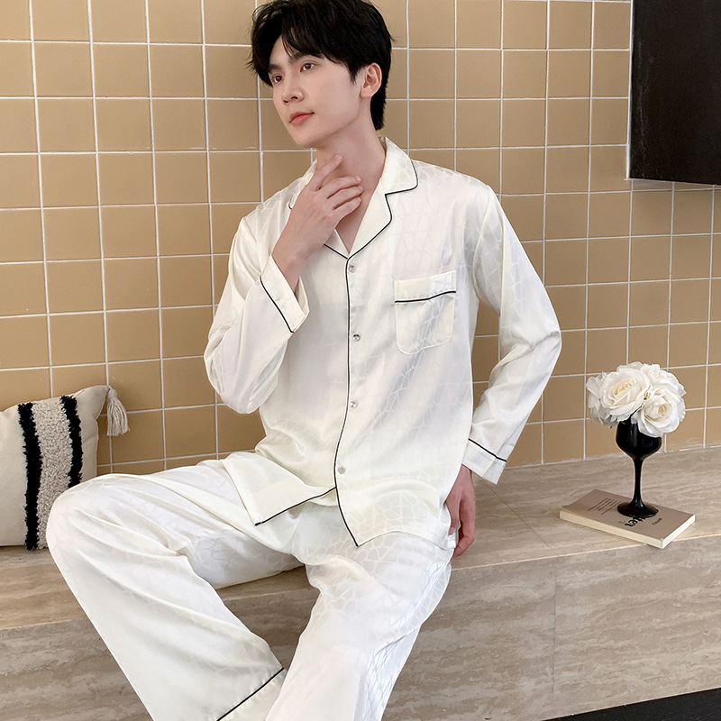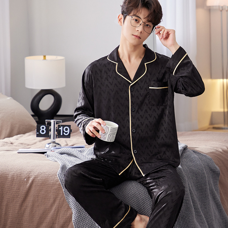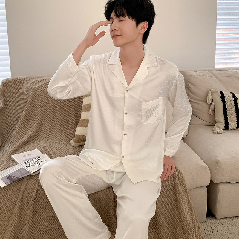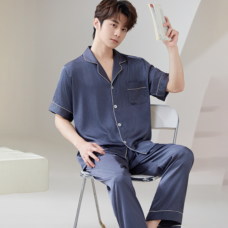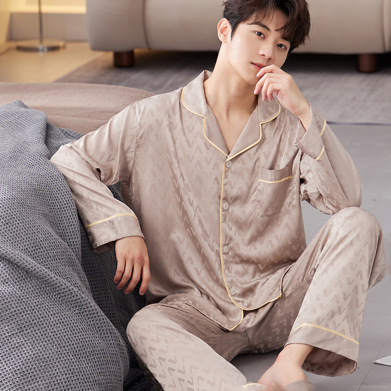 Главная страница > Пижама из ледяного шелка Мужская весна и осень Легкий роскошный набор Летний шелк тонкий продвинутый жаккардовый домашний костюм можно носить на улице