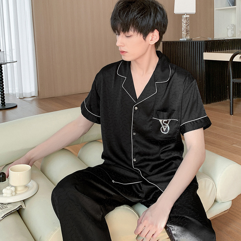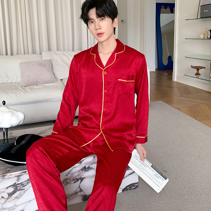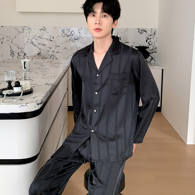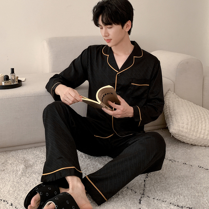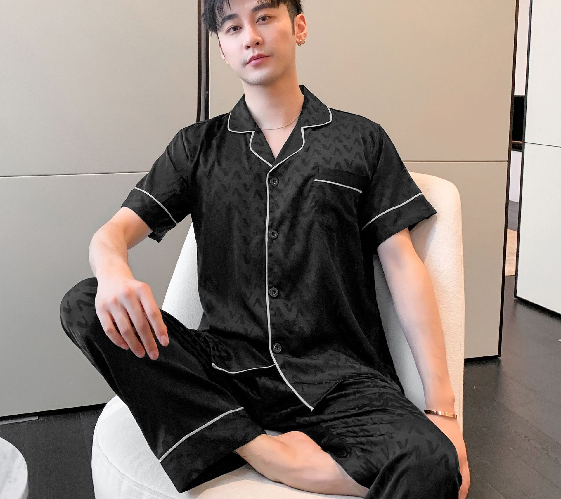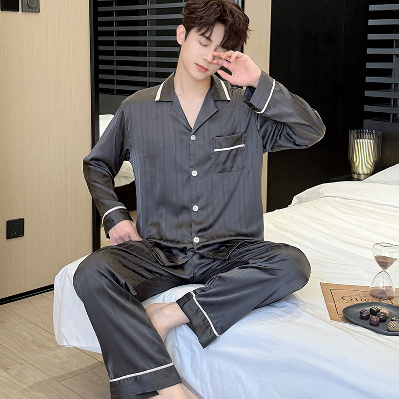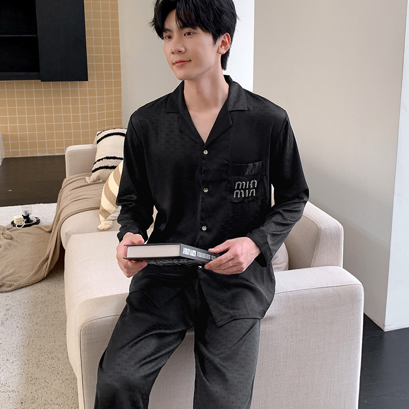 Главная страница > Пижама из ледяного шелка Мужская весна и осень Легкий роскошный набор Летний шелк тонкий продвинутый жаккардовый домашний костюм можно носить на улице