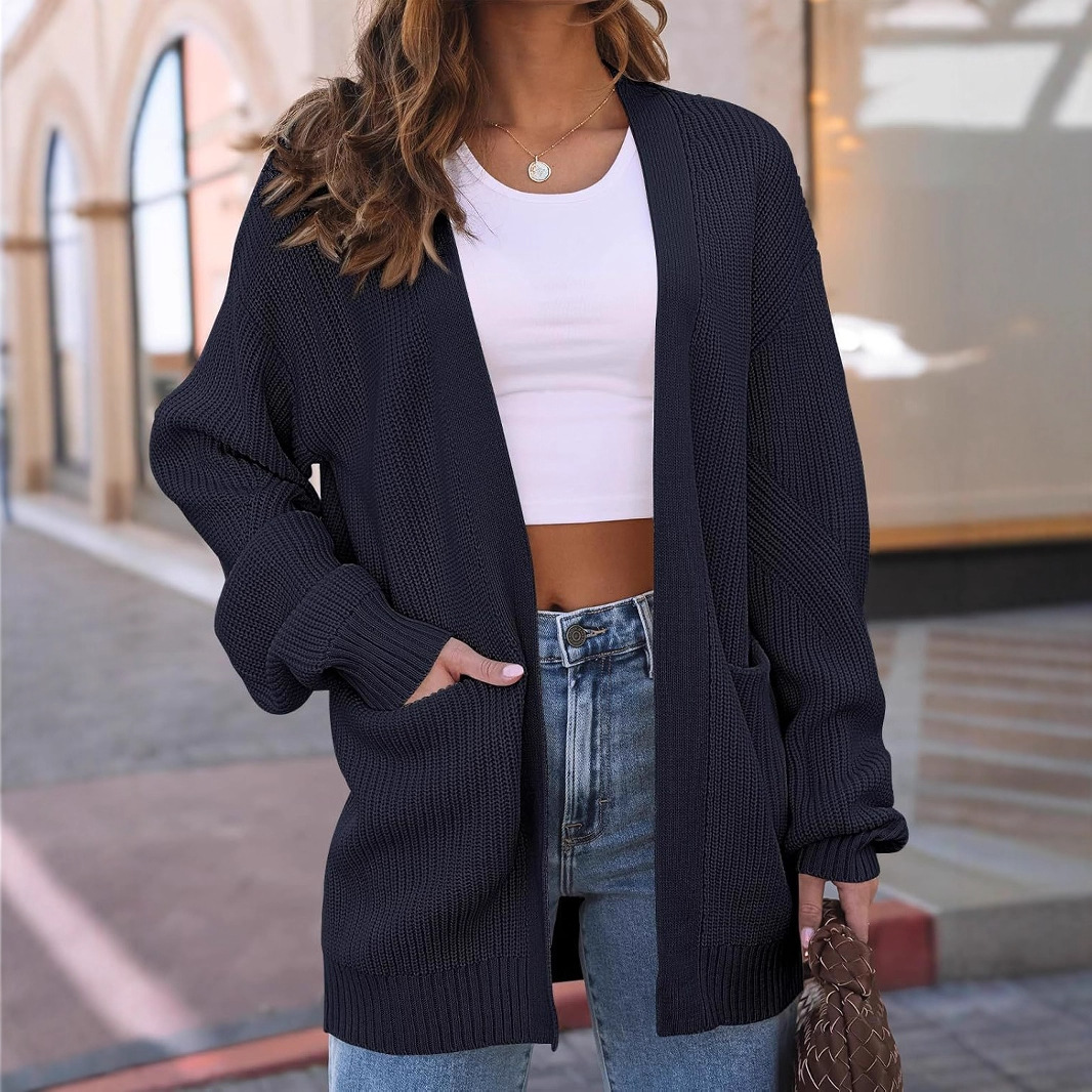 Главная страница > Новый стильный вязаный кардиган с карманами. Европейская и американская мода, осенне-зимний кардиган, женский толстый вязаный топ, высококачественный свитер, куртка.