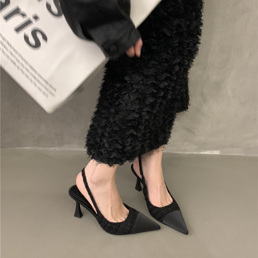 Главная страница > Женские летние босоножки 2024 года, новая модель, с заострённым носком в стиле Chanel, на высоком каблуке-шпильке, с открытой пяткой, в французском стиле.