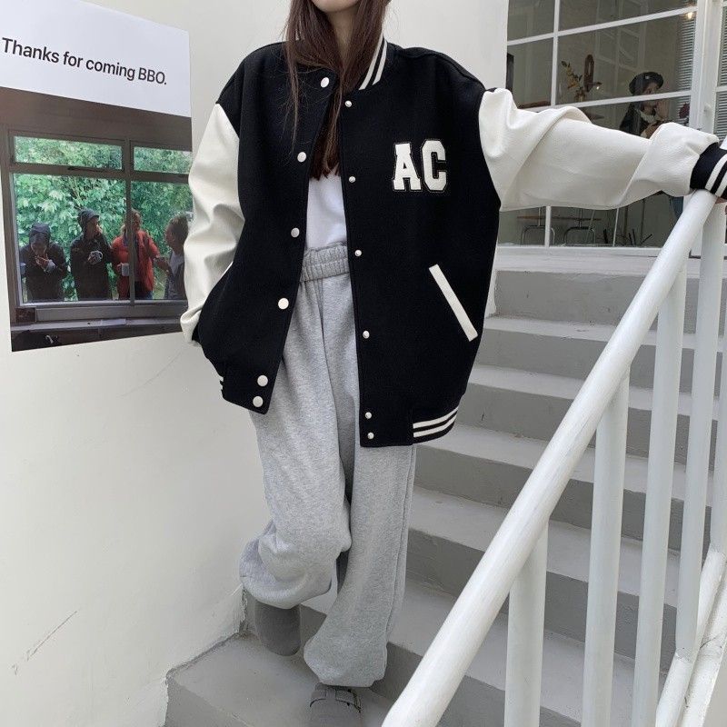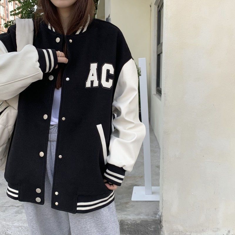 Главная страница > Осенне-зимняя модная бейсбольная куртка с буквенным принтом, Женская парная одежда, свободная куртка-кардиган на флисовой подкладке, куртка-кардиган для студенческого класса