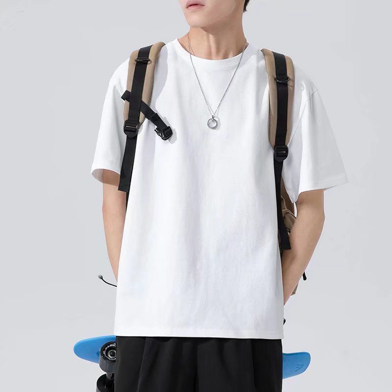 Белая футболка с короткими рукавами.