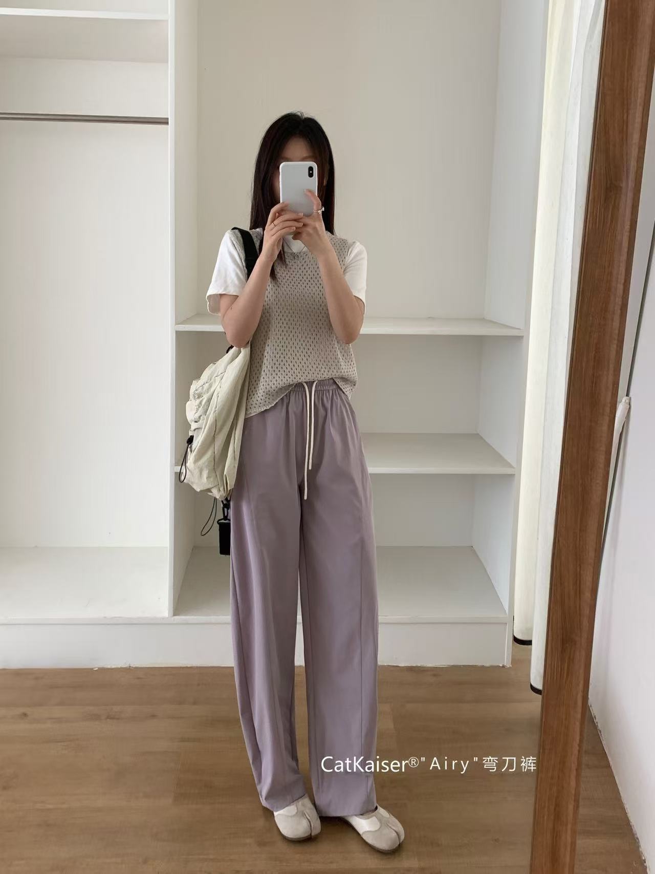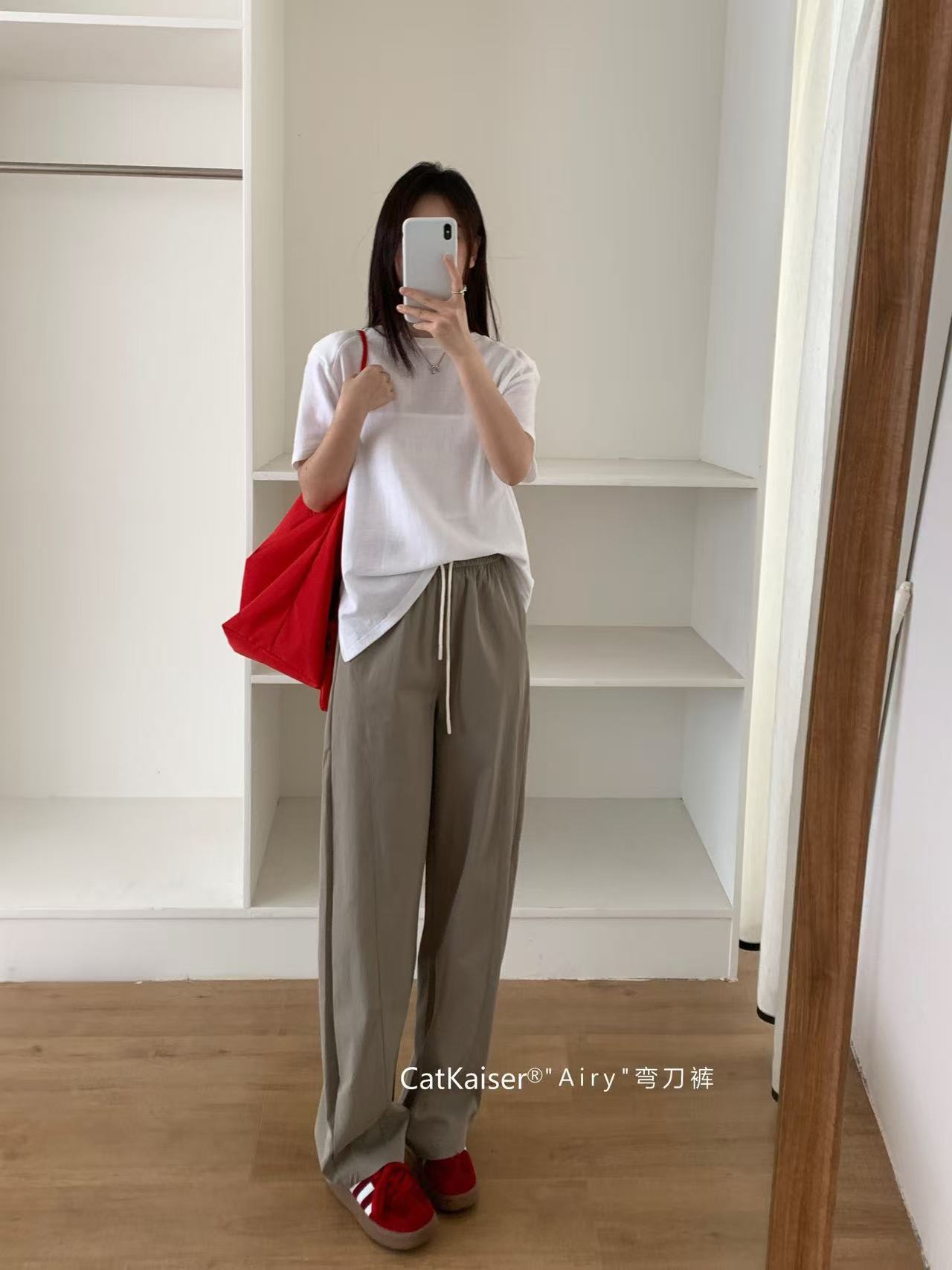 Главная страница > CatKaiser "Airy" штаны мачете 2025 новая высокая талия шнурок мода тонкая повседневная широкая штаны для женщин