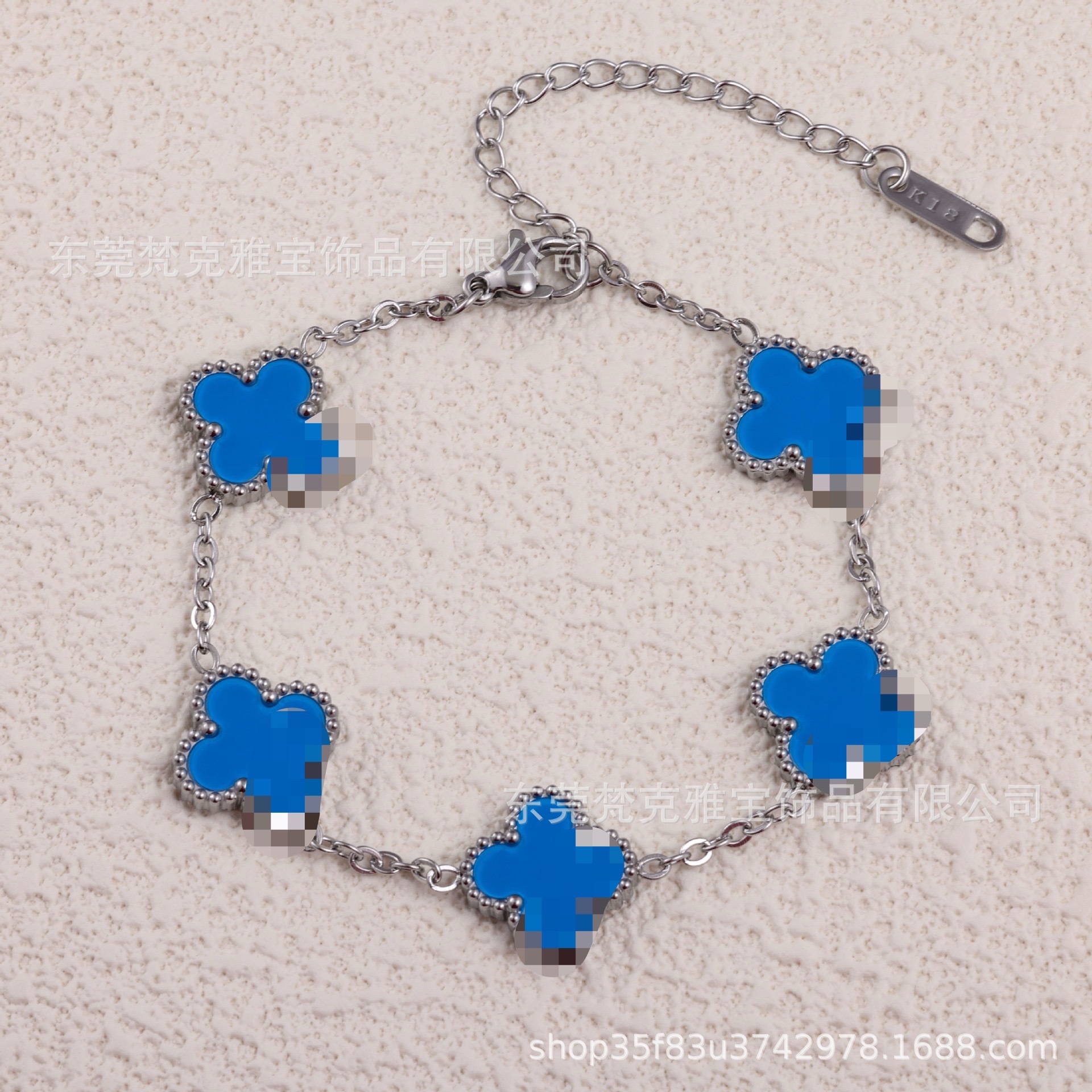 Главная страница > Трансграничный титановый стальной серебряный 13 мм четырехлистный двухсторонний браслет с пятью цветами