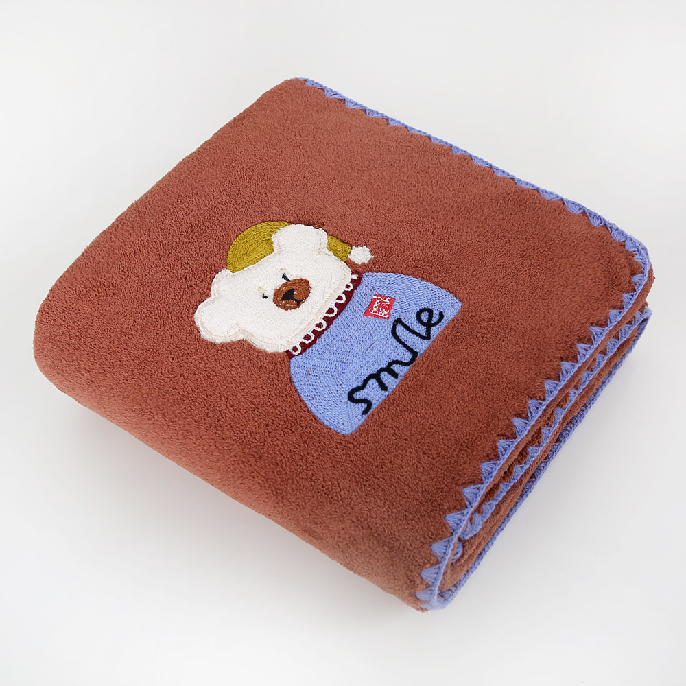 Новый стиль, коралловый бархат, вязаный крючком, с вышивкой, милый медведь, домашнее студенческое общежитие, очень утолщенное полотенце