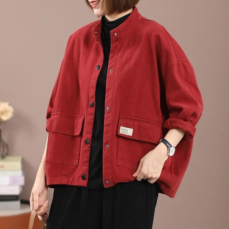 Главная страница > Рабочая одежда с воротником-стойкой, джинсовая куртка, женская повседневная куртка, новинка 2024, весна и осень, свободный короткий кардиган большого размера