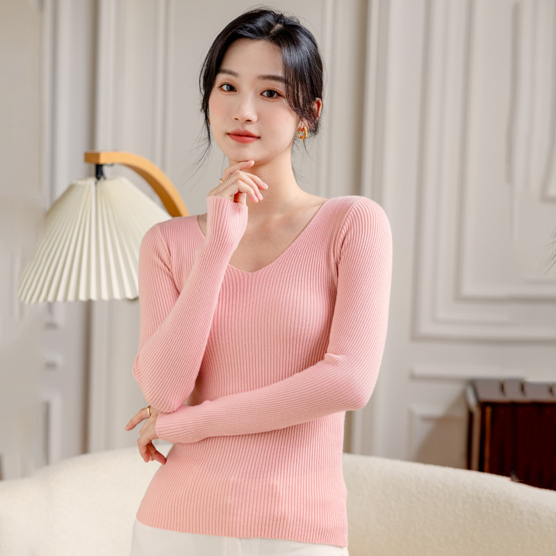 Главная страница > Осенне-зимний винтажный пуловер, трикотажная рубашка с V-образным вырезом, приталенная теплая Базовая рубашка с длинными рукавами, топ, приталенный Универсальный свитер, Модный женский