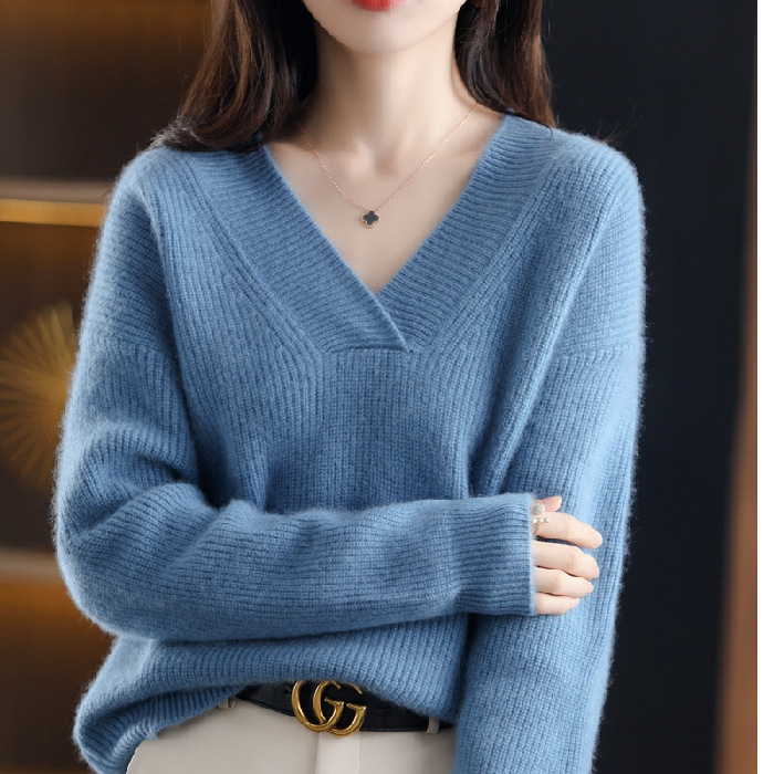 Главная страница > Однотонный пуловер с V-образным вырезом, свободный тонкий свитер, Новая Элегантная Повседневная универсальная Базовая рубашка для женщин, Осень-зима