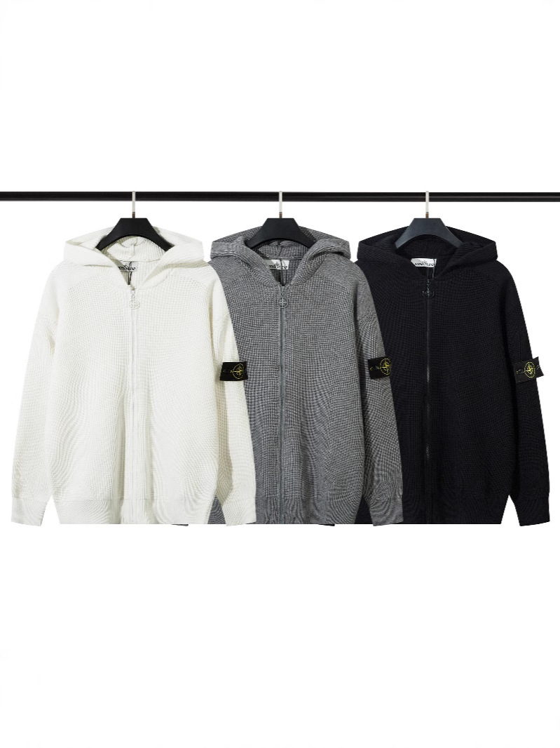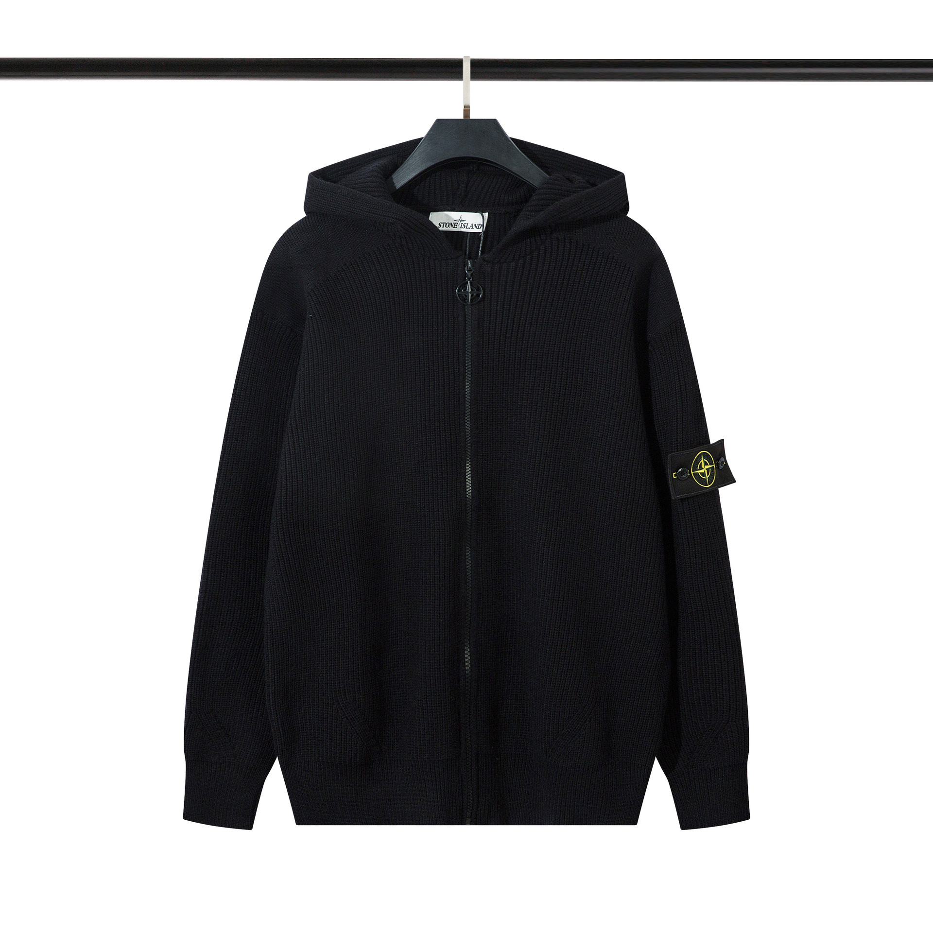 Главная страница > Трансграничный европейский и американский STONE с каменной молнией, открытый нагрудник, воротник-стойка, функциональный вязаный свитер с капюшоном для мужчин и женщин, модный