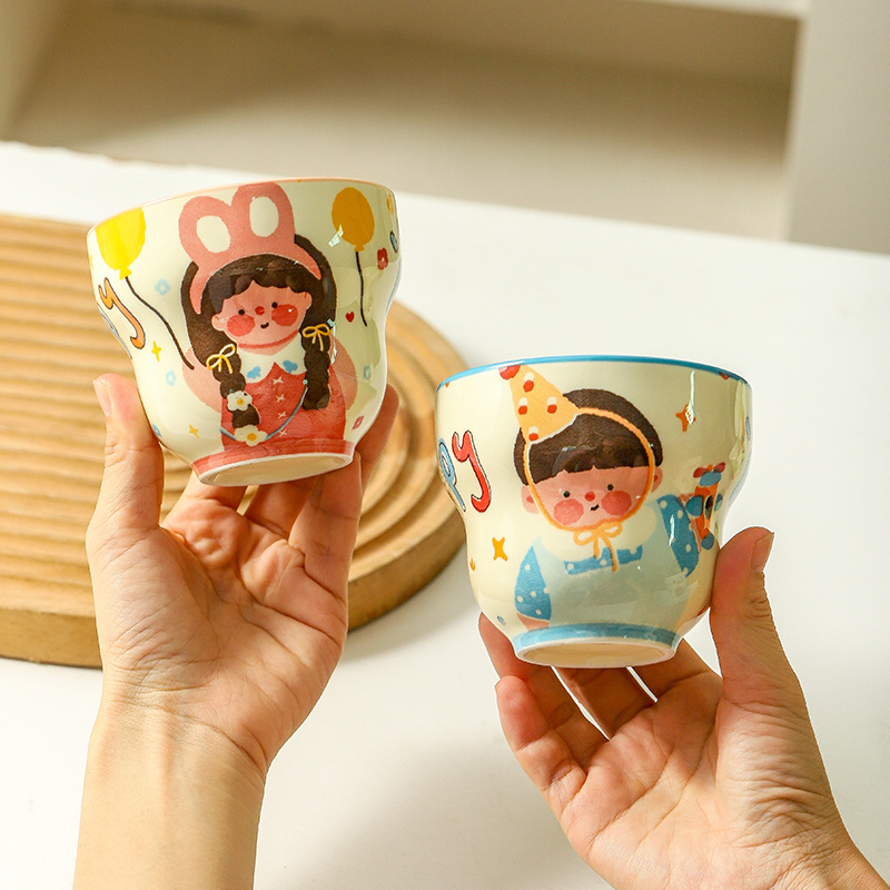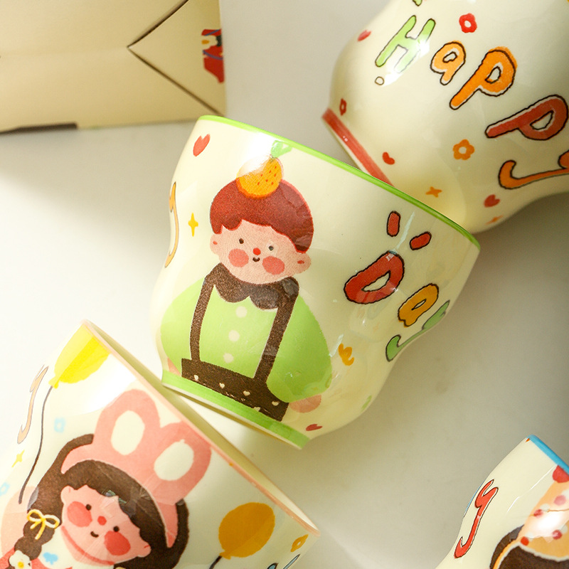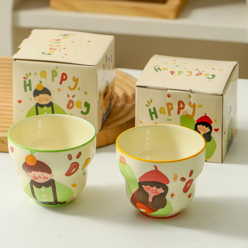 Главная страница > Кофейная чашка для семьи из четырех человек, бытовая керамическая чашка, милая мультяшная чашка для завтрака, небольшой подарок на мероприятие, сувенирная чашка