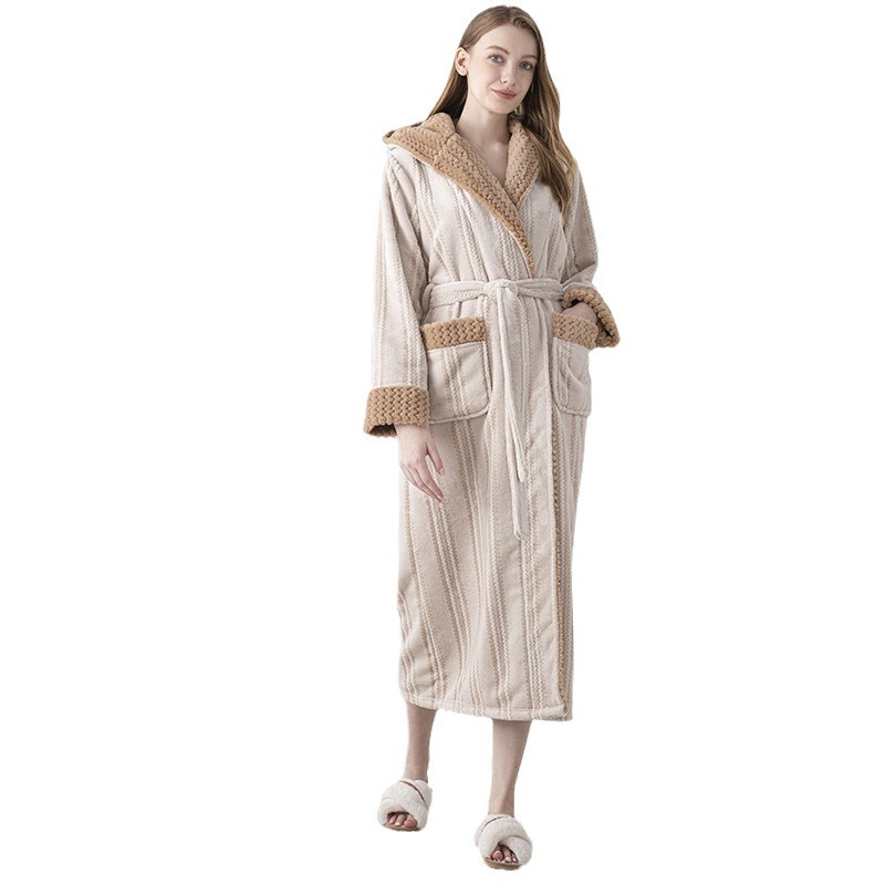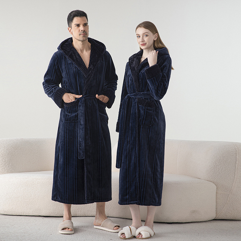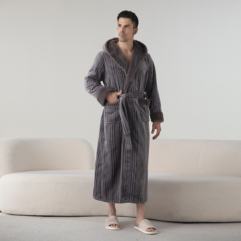 Главная страница > Трансграничная длинная ночная одежда осенний и зимний большой размер халат двойной жаккардовый пижама с капюшоном Мужской ночной халат толстый халат
