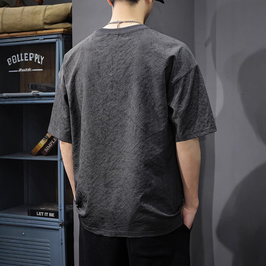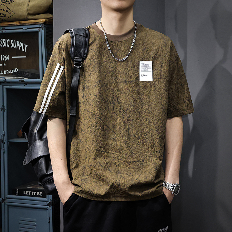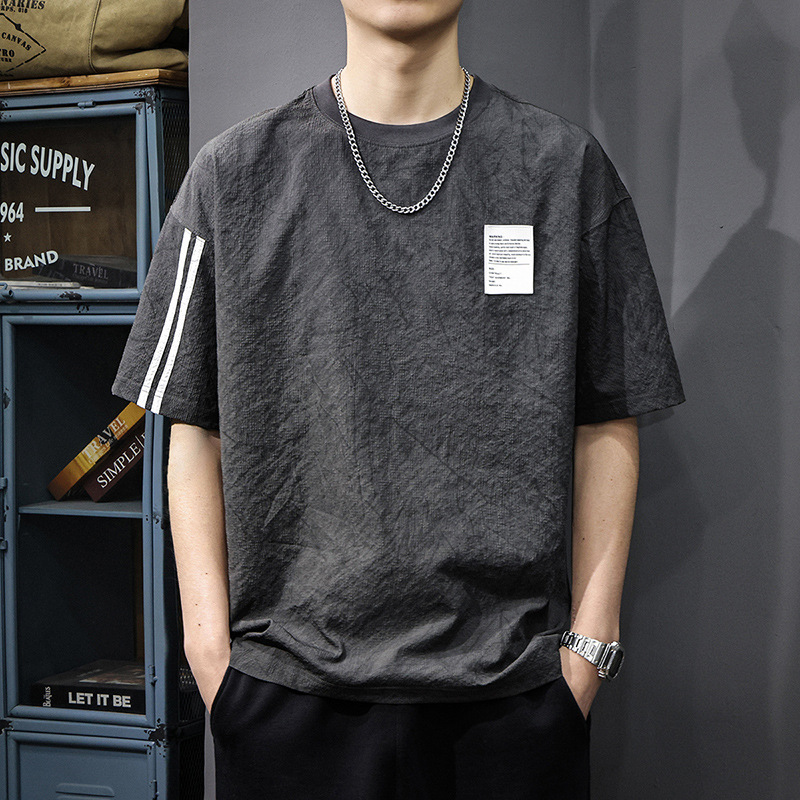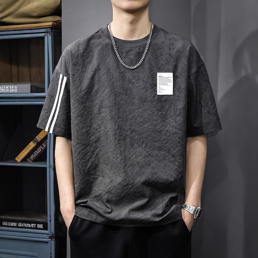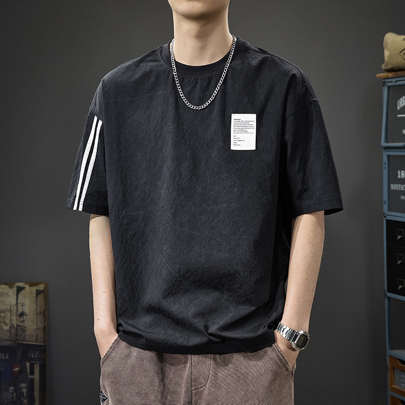 Главная страница > Летняя новая текстура ледяная шелковая холодная футболка с короткими рукавами мужская тонкая, сухая свободная американская футболка с половиной рукава большого размера