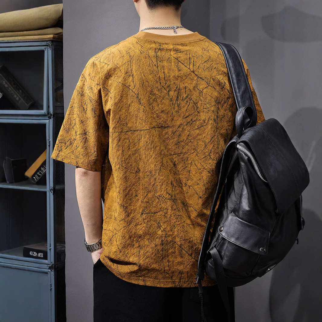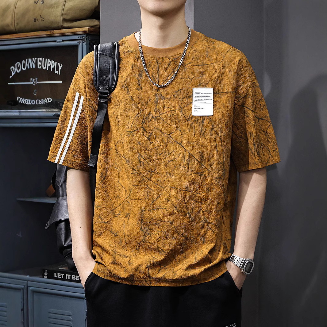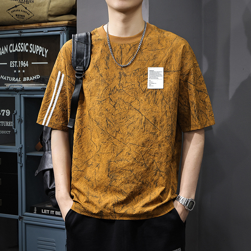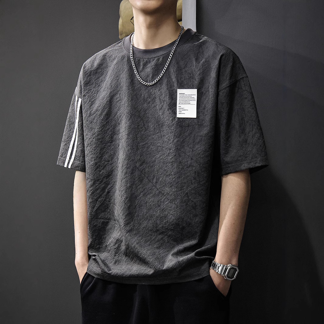 Главная страница > Летняя новая текстура ледяная шелковая холодная футболка с короткими рукавами мужская тонкая, сухая свободная американская футболка с половиной рукава большого размера