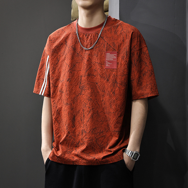Летняя новая текстура ледяная шелковая холодная футболка с короткими рукавами мужская тонкая, сухая свободная американская футболка с половиной рукава большого размера