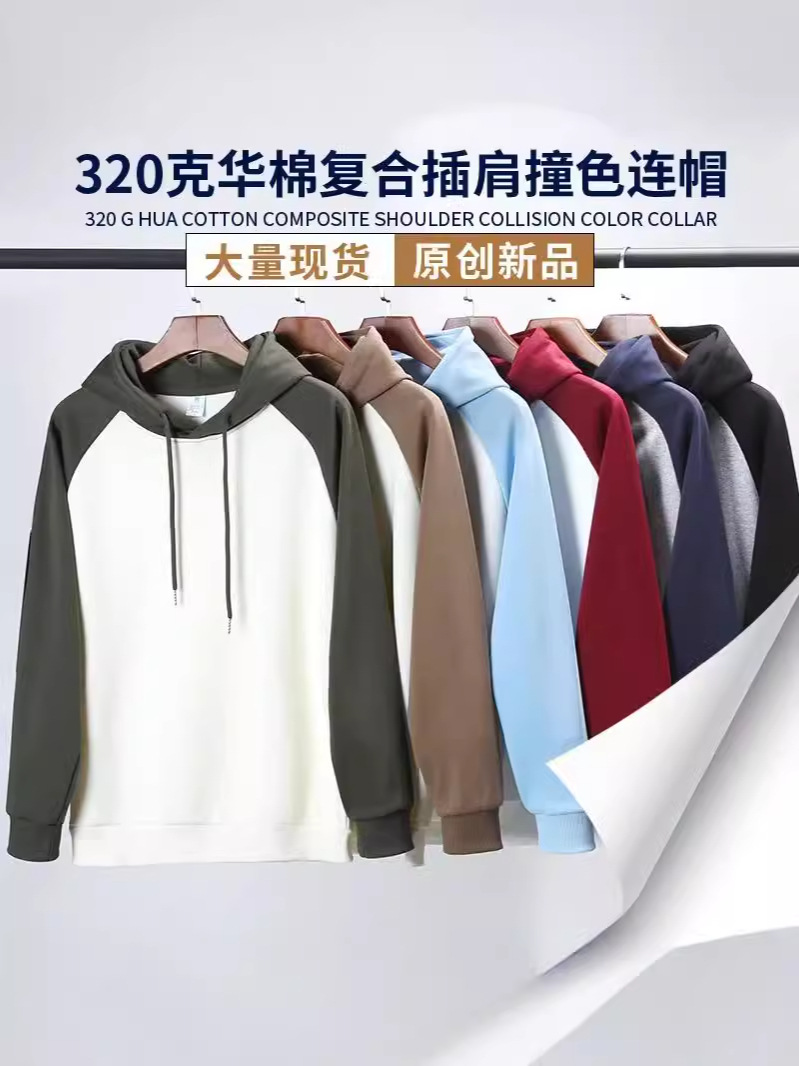 320 г толстовка из китайского хлопка реглан большой версии темно-синего и белого серого цвета