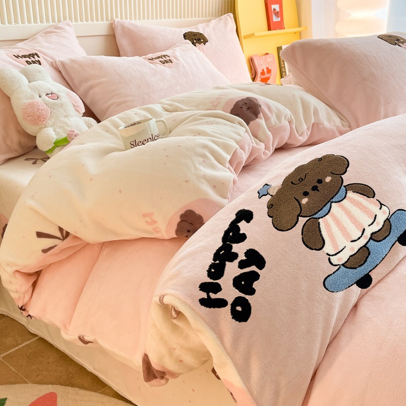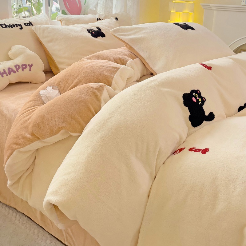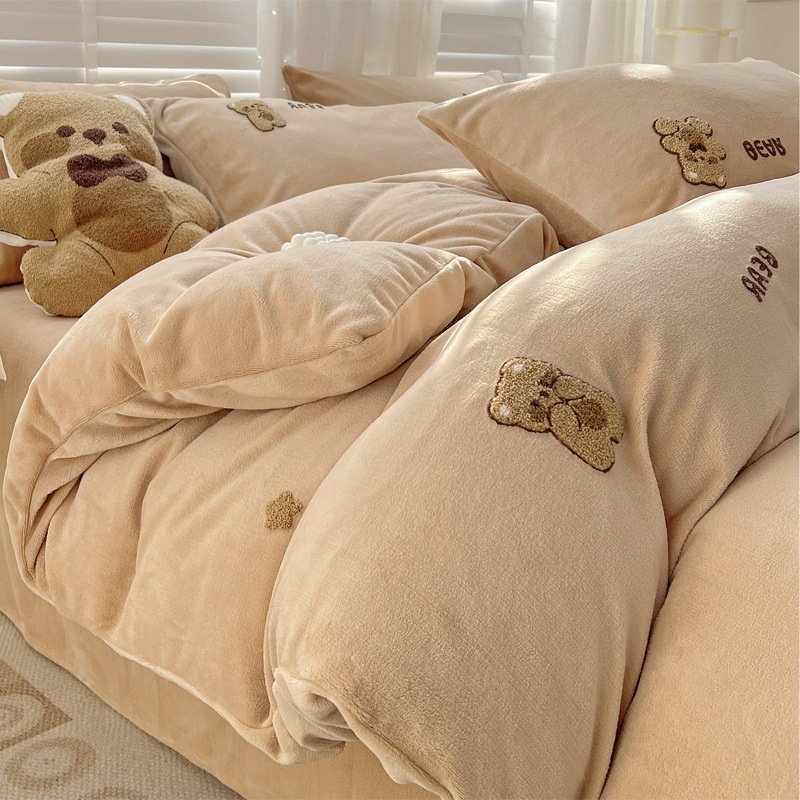 Новые толстые молочные бархатные кровати набор из четырех частей зимой