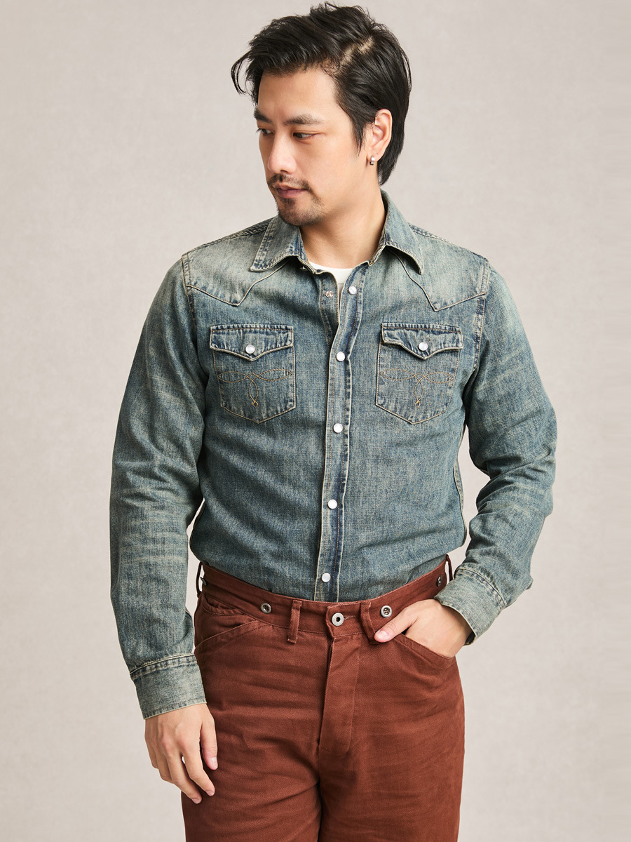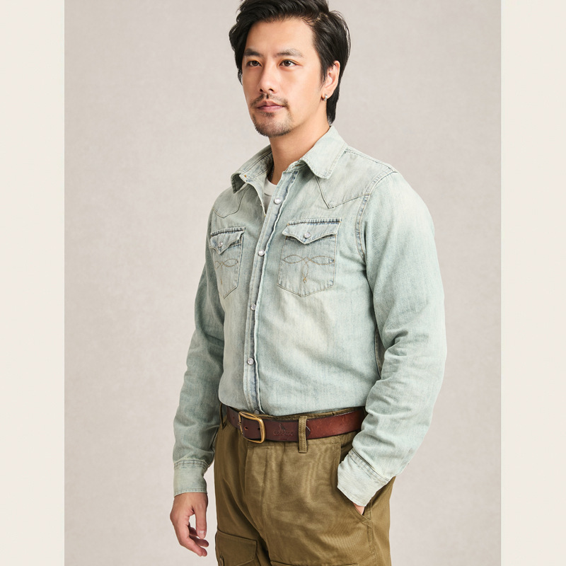 Главная страница > Double R на работе Amei Kaka ретро джинсовая рубашка мужская мойка пуговицы из хлопка ретро американский стиль