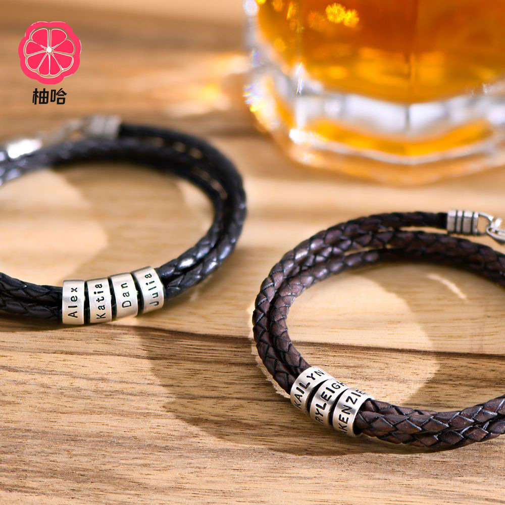 Главная страница > Трансграничная Пряжка для лобстеров кожаная Ручная Веревка подарок на День отца надпись из нержавеющей стали DIY браслет с фамилией Производители источников