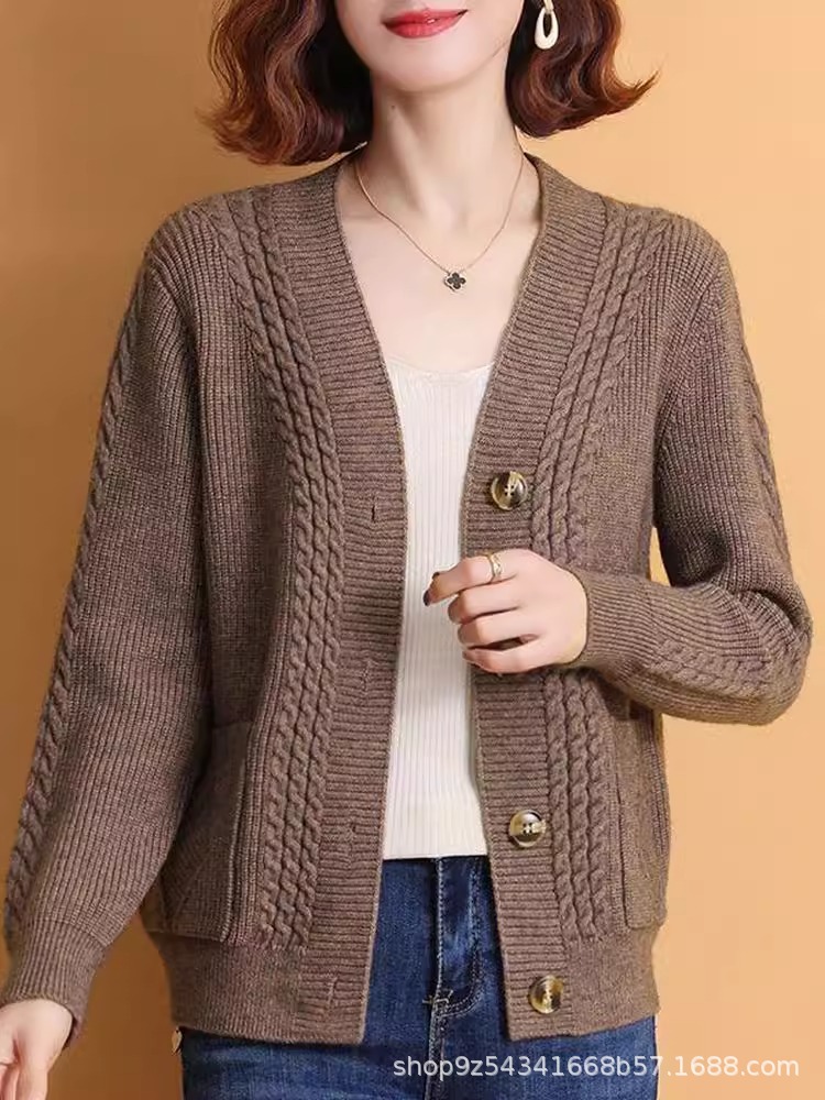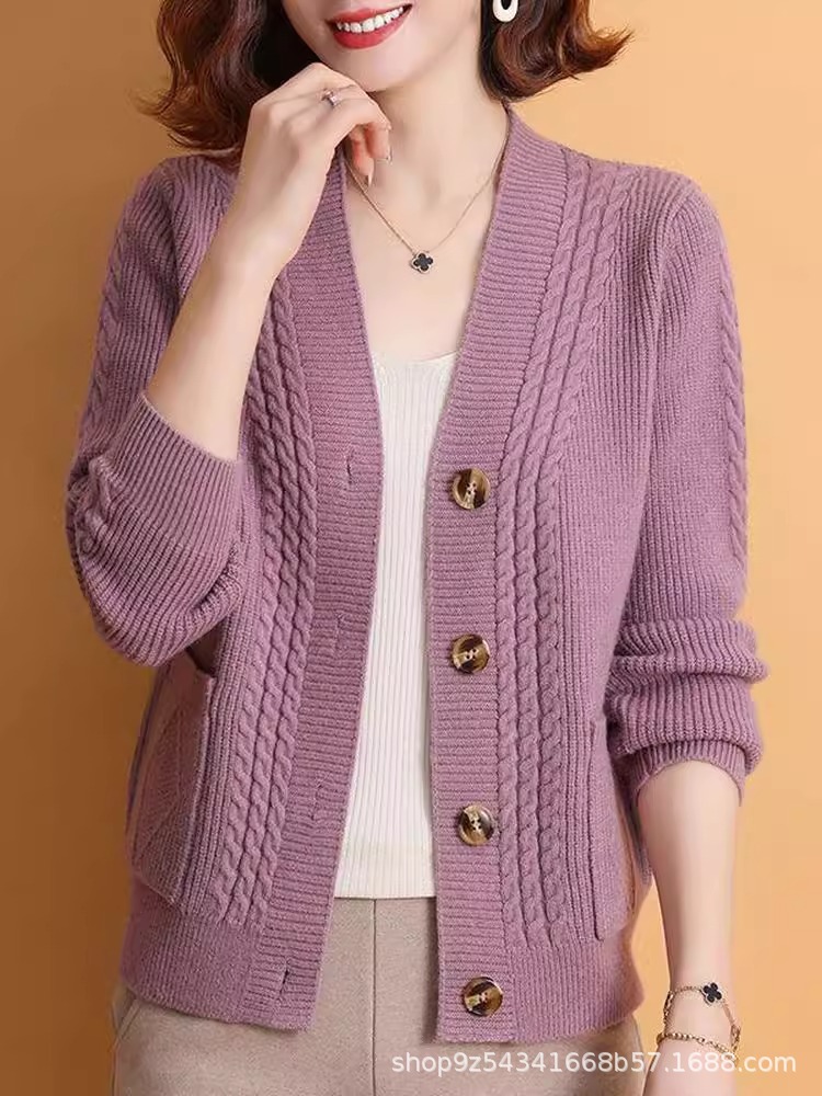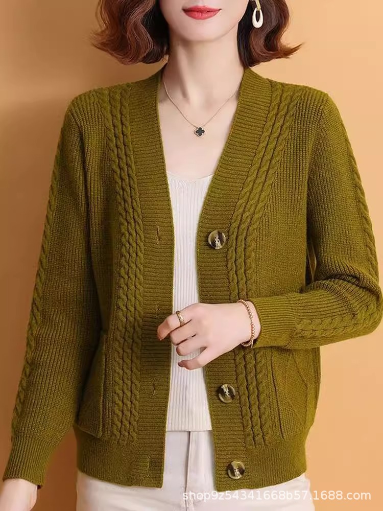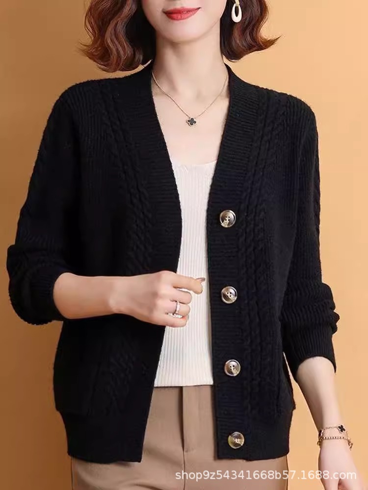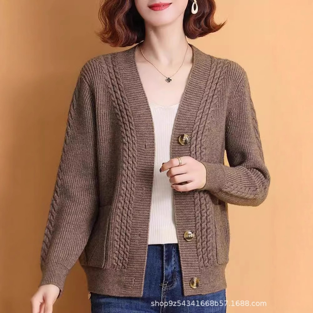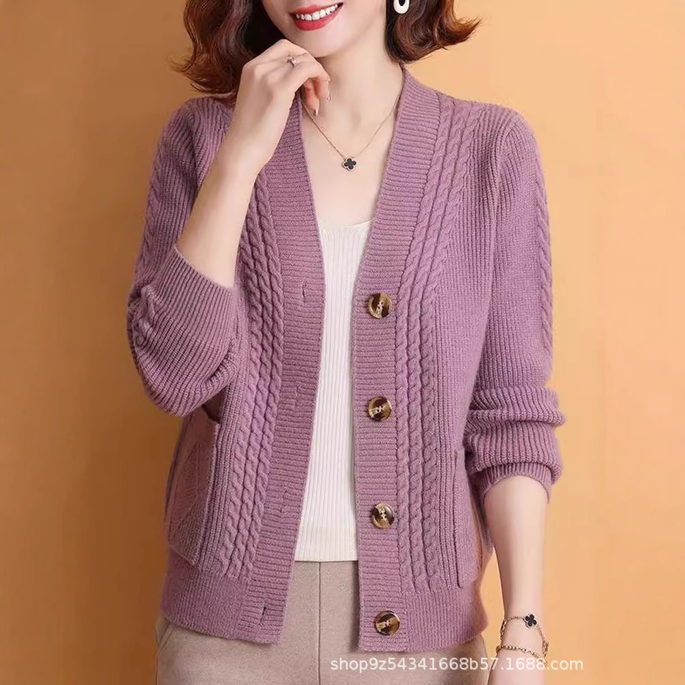 Главная страница > Трикотажный кардиган женский весенний и осенний новый vi-выемчатый топ женский свободный с длинными рукавами свободный дикий трикотажный свитер куртка