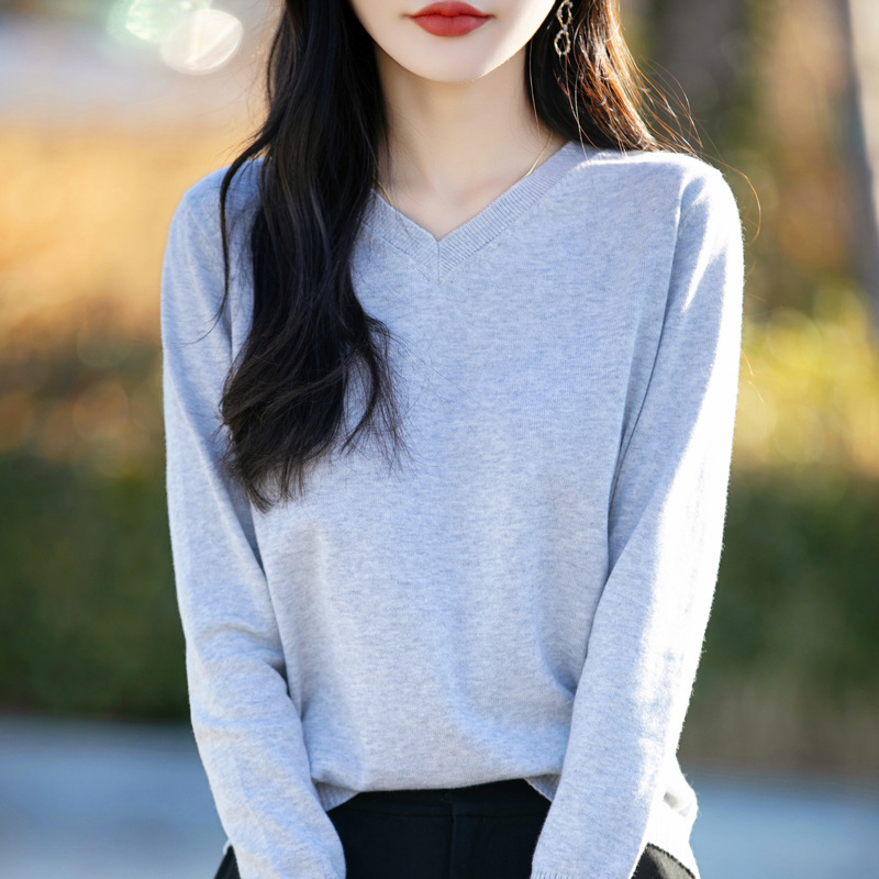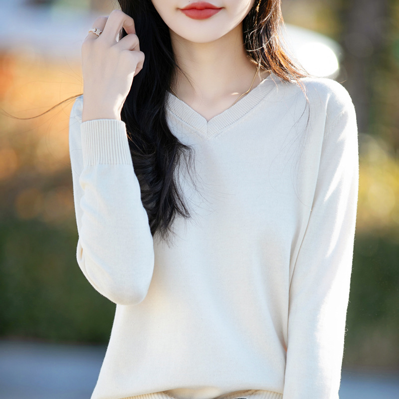 Главная страница > Хлопковая нить вязаный свитер женский V-образный с длинным рукавом тонкий внутренний свитер Весенняя осень топ свободный пуловер нити нижний свитер