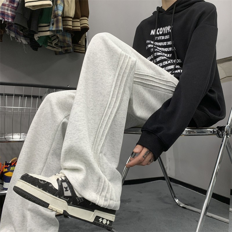 Главная страница > Осенние и зимние бархатные повседневные брюки мужской американский ретро серые широкие брюки подросток склонный спортивный брюки