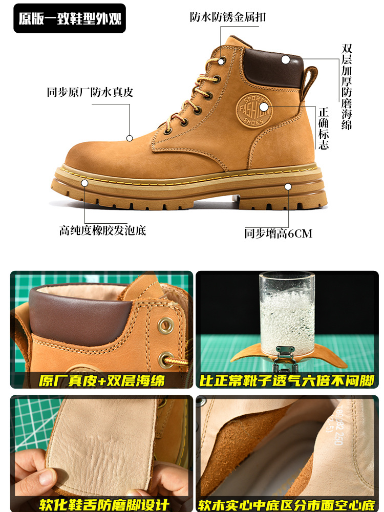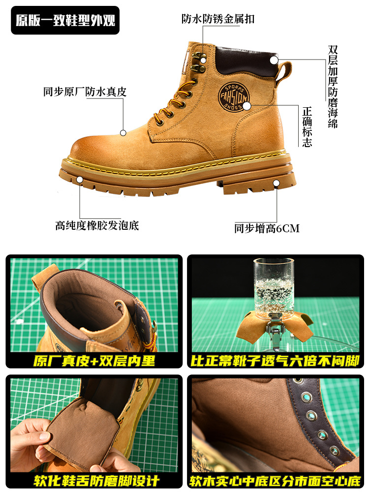 Главная страница > Ботинки Martin, желтые ботинки, унисекс, новая модель 2024 года, натуральная кожа, на толстой подошве, повседневные для осени и зимы, увеличивающие рост, неразрушимые рабочие ботинки.