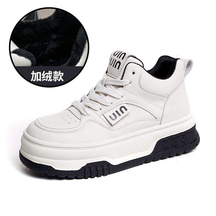 Главная страница > Женские повседневные универсальные белые туфли из натуральной кожи с бархатной подкладкой на толстой подошве, высокие, теплые, на хлопковой основе, осень-зима 2025