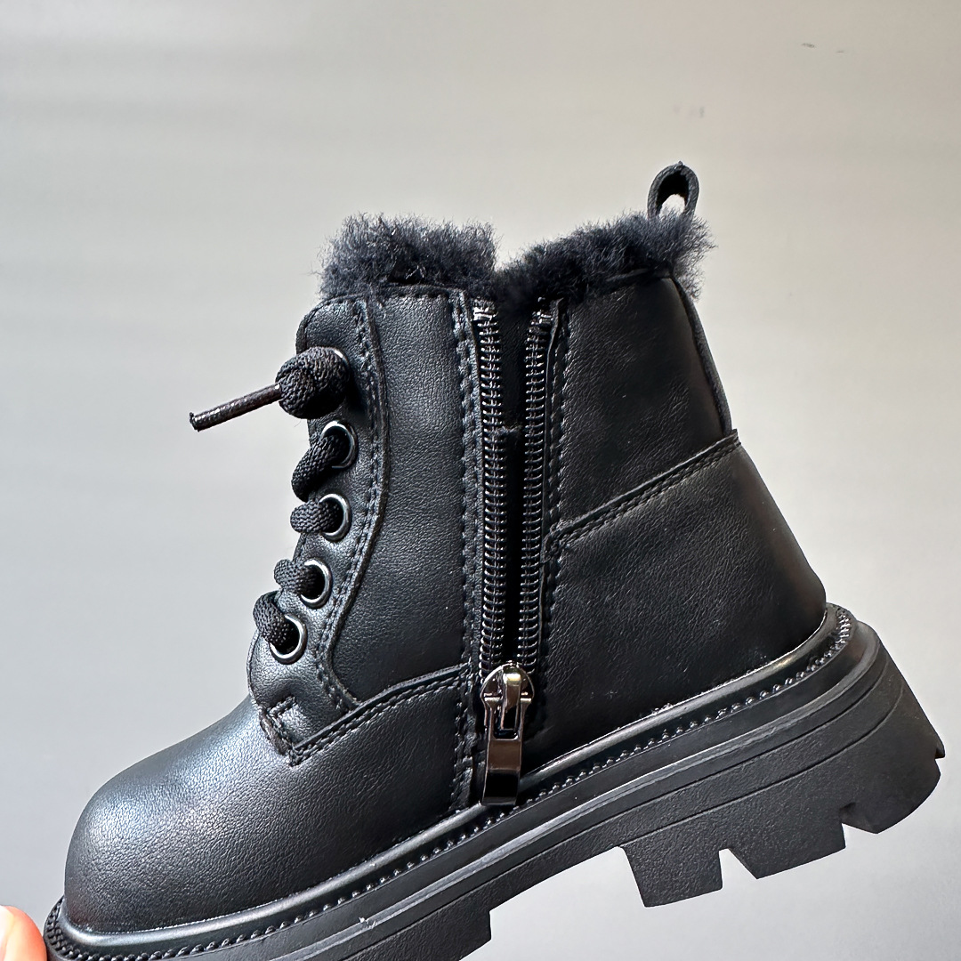 Главная страница > Детские зимние ботинки из натуральной кожи, модель 2025 года, с двойным утеплением из флиса и хлопка, теплые снегоступы для девочек и мальчиков, большие хлопковые сапоги