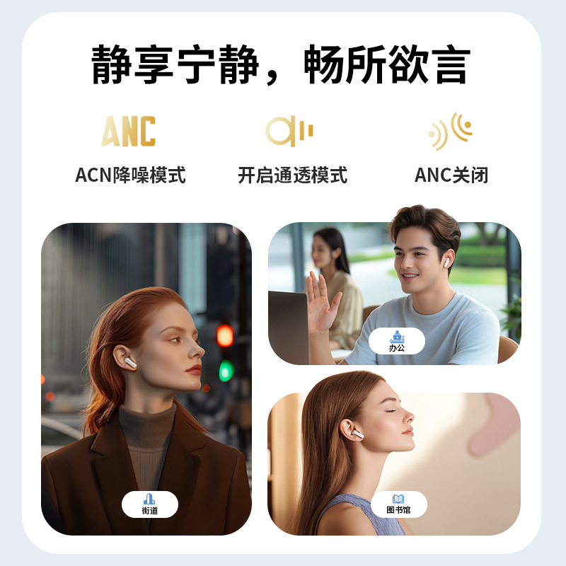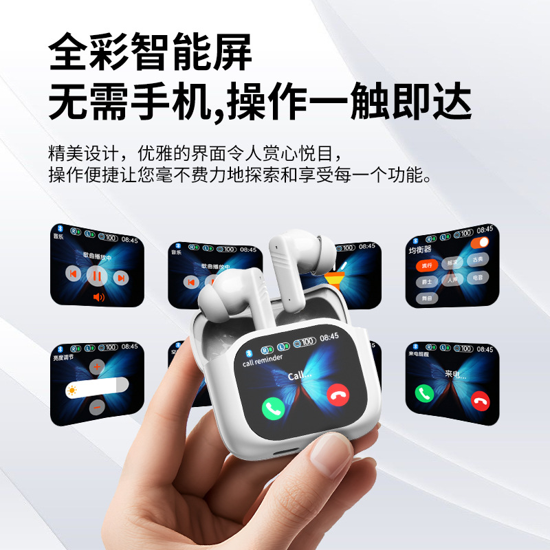 Популярная трансграничная беспроводная Bluetooth-гарнитура с шумоподавлением, безболезненная при длительном ношении, Bluetooth-гарнитура-вкладыш с интеллектуальным цветным экраном и длительным временем автономной работы.